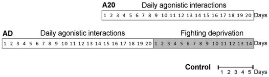 | AD | A20 mice after 14 days of deprivation (no-fight period without agonistic interactions) |