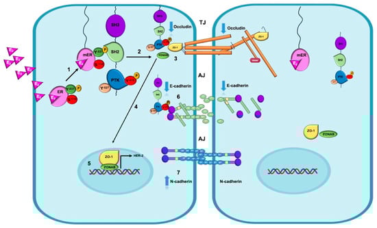 - Jiménez-Salazar, J.E.; Posadas-Rodríguez, P.; Lazzarini-Lechuga, R.C.; Luna-López, A.; Zentella-Dehesa, A.; Gómez-Quiroz, L.E.; Königsberg, M.; Domínguez-Gómez, G.; Damián-Matsumura, P. Membrane-Initiated Estradiol Signaling of Epithelial-Mesenchymal Transition-Associated Mechanisms Through Regulation of Tight Junctions in Human Breast Cancer Cells. Horm. Cancer 2014, 5, 161–173. [Google Scholar] [CrossRef]