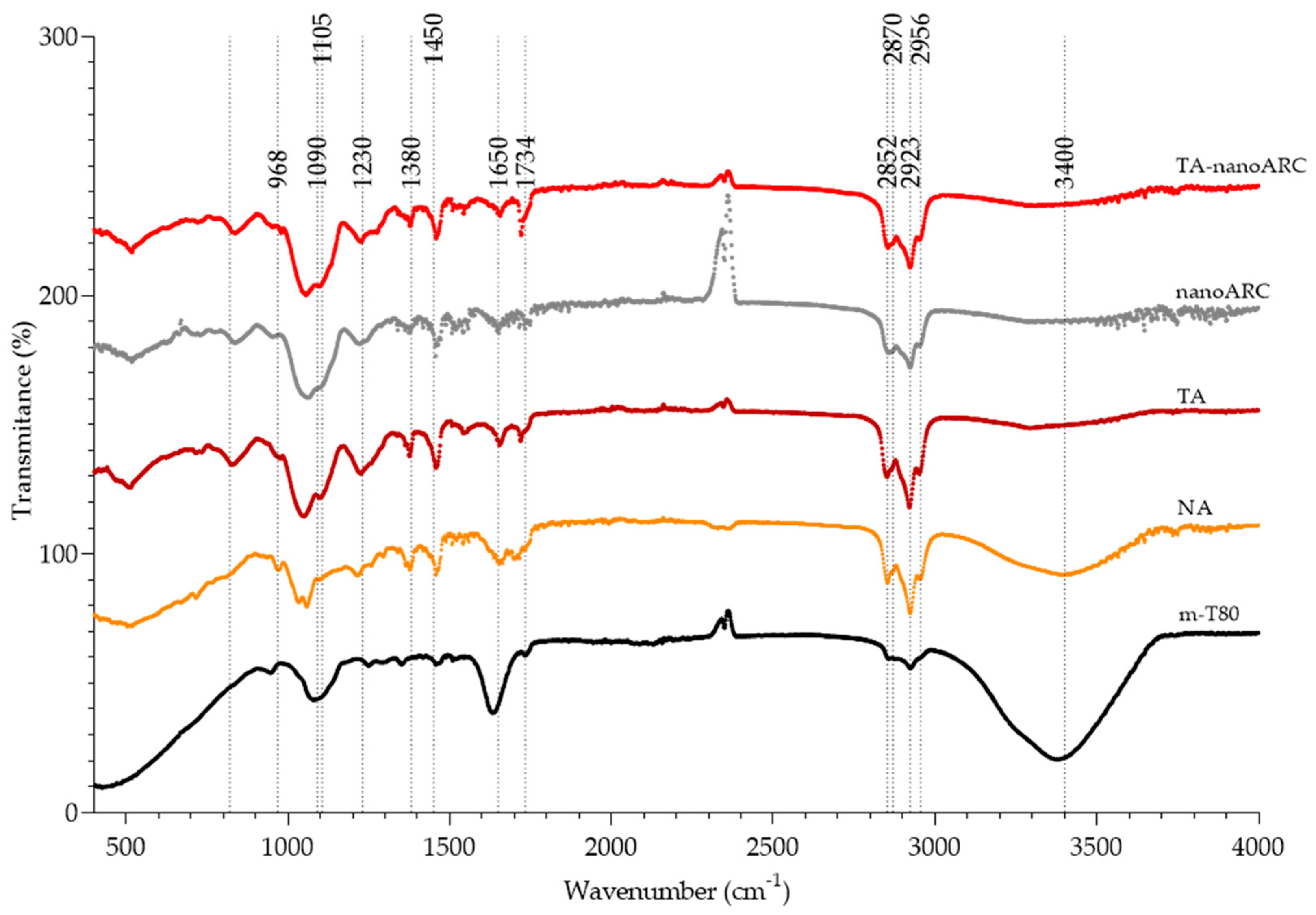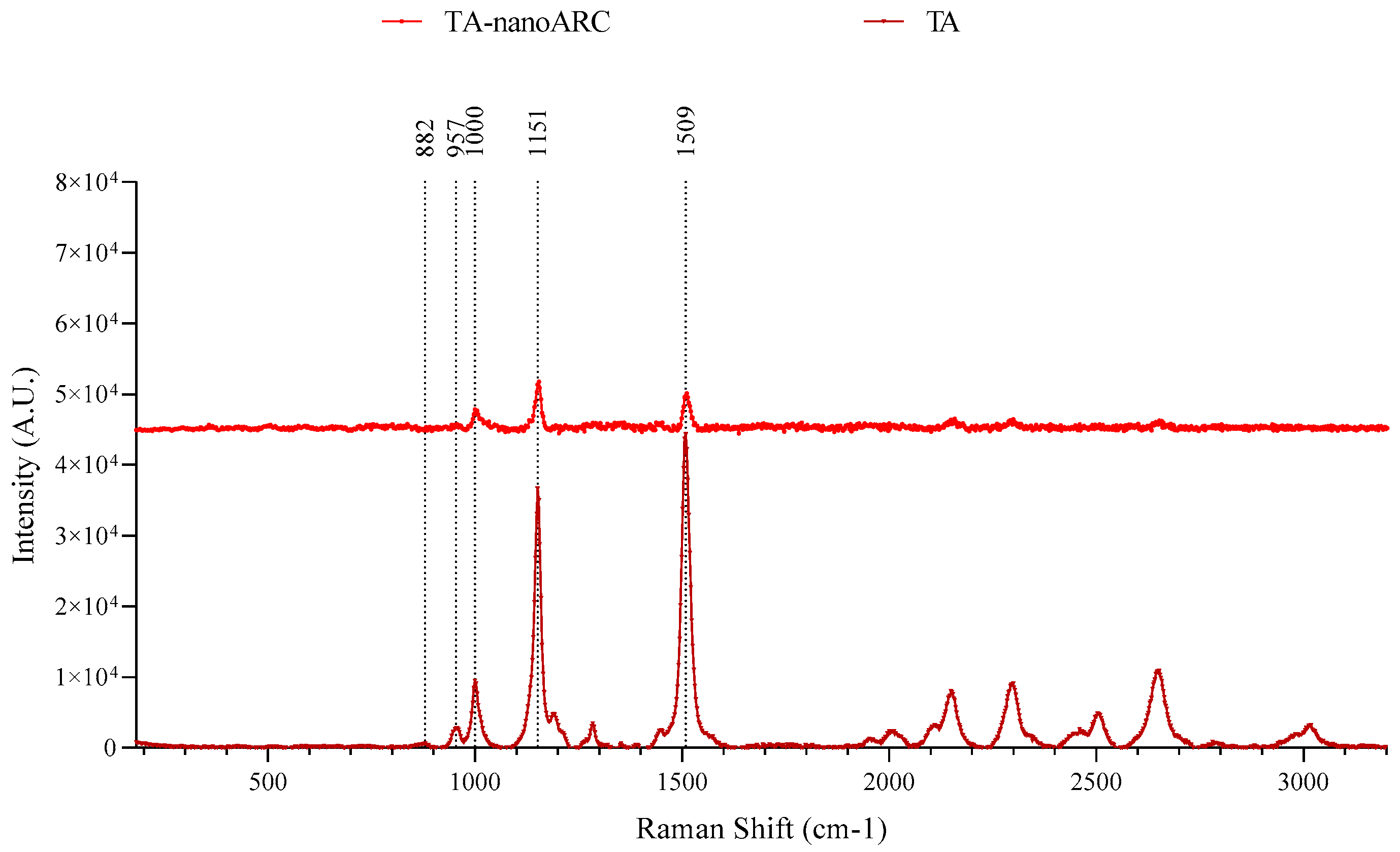 2.2. Structural Characterization of TA-nanoARC and nanoARC