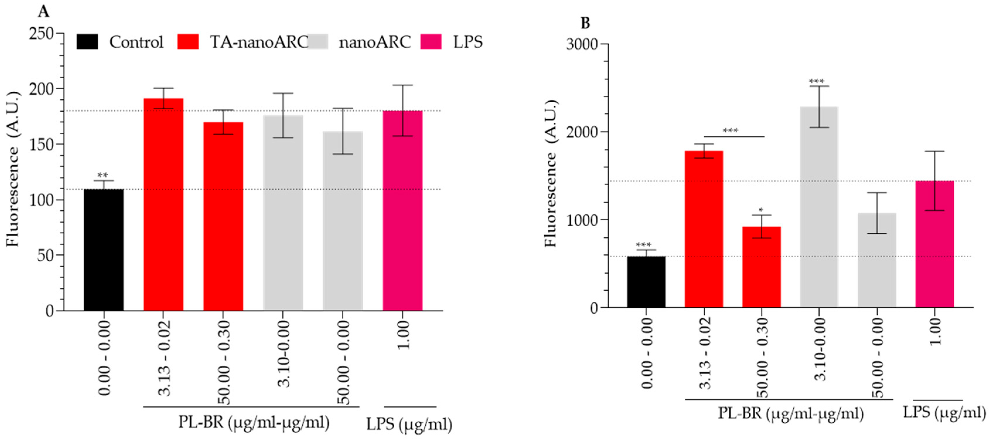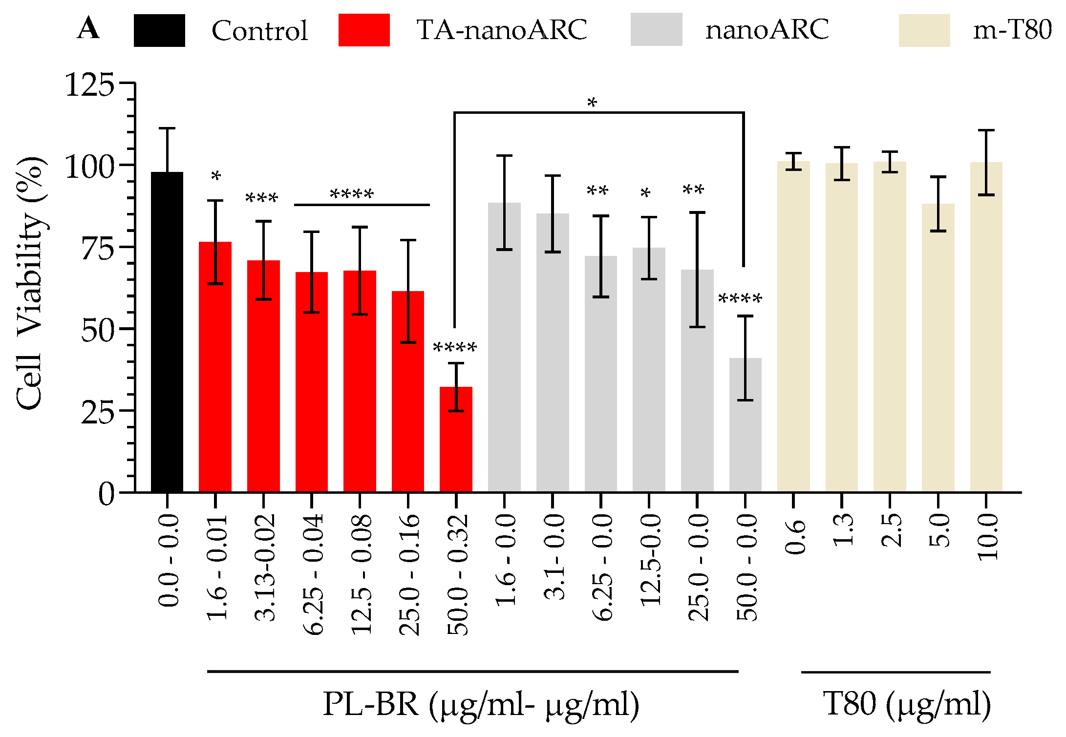 4.15. Determination of Pro-Inflammatory Cytokines in Human Macrophages