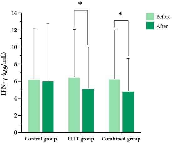 34]. Consistent with these findings, our study found within-group reductions in IFN-γ and TNF-α in both of the intervention groups, suggesting that HIIT may attenuate chronic low-grade inflammation in individuals with long COVID.