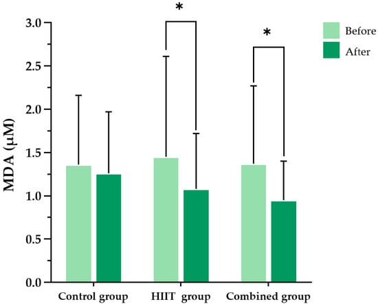 35] reported that just 6 weeks of HIIT attenuated oxidative stress responses and improved antioxidant capacity in healthy individuals. These mechanisms likely explain the reductions in MDA and protein carbonyls observed in our HIIT and combined groups. A recent review also concluded that HIIT functions as a form of “redox medicine,” capable of restoring redox balance across cardiometabolic populations [
