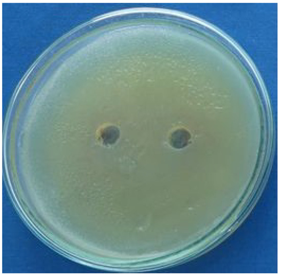 The result of the disk diffusion method for the leachate from the film deposited using 2-ethyl-2-oxazoline. The used bacterial strain was E. coli.