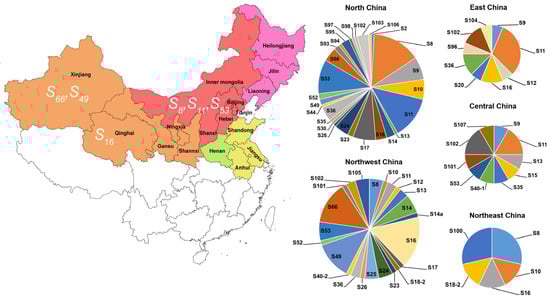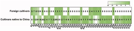 2.6. Geographic Distribution Patterns of S-Allele Frequencies in Chinese Apricot Cultivars