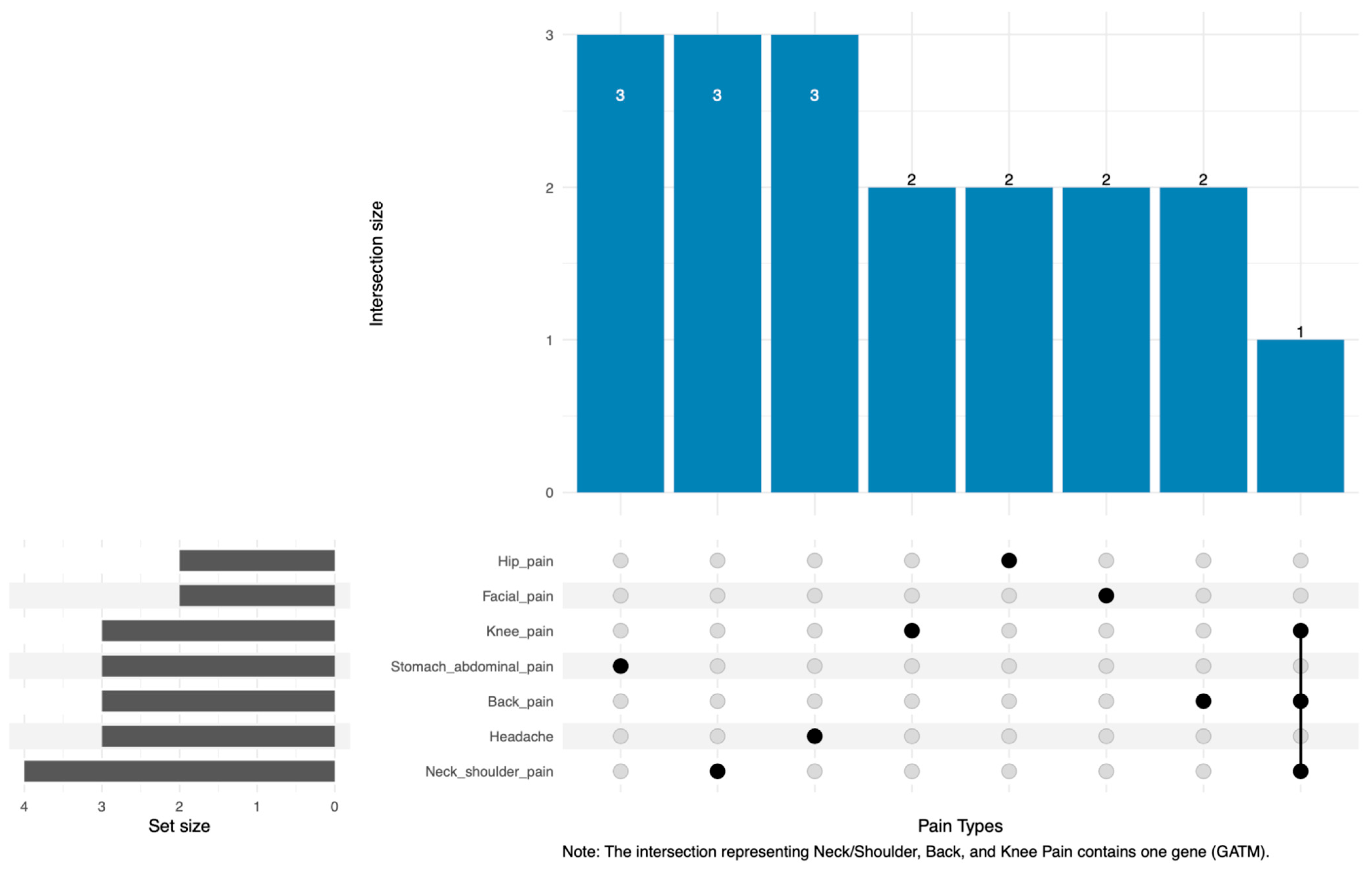Back pain | 1340 | 373 | 78 | 8 | ACSF2, ECHS1, GATM | No |