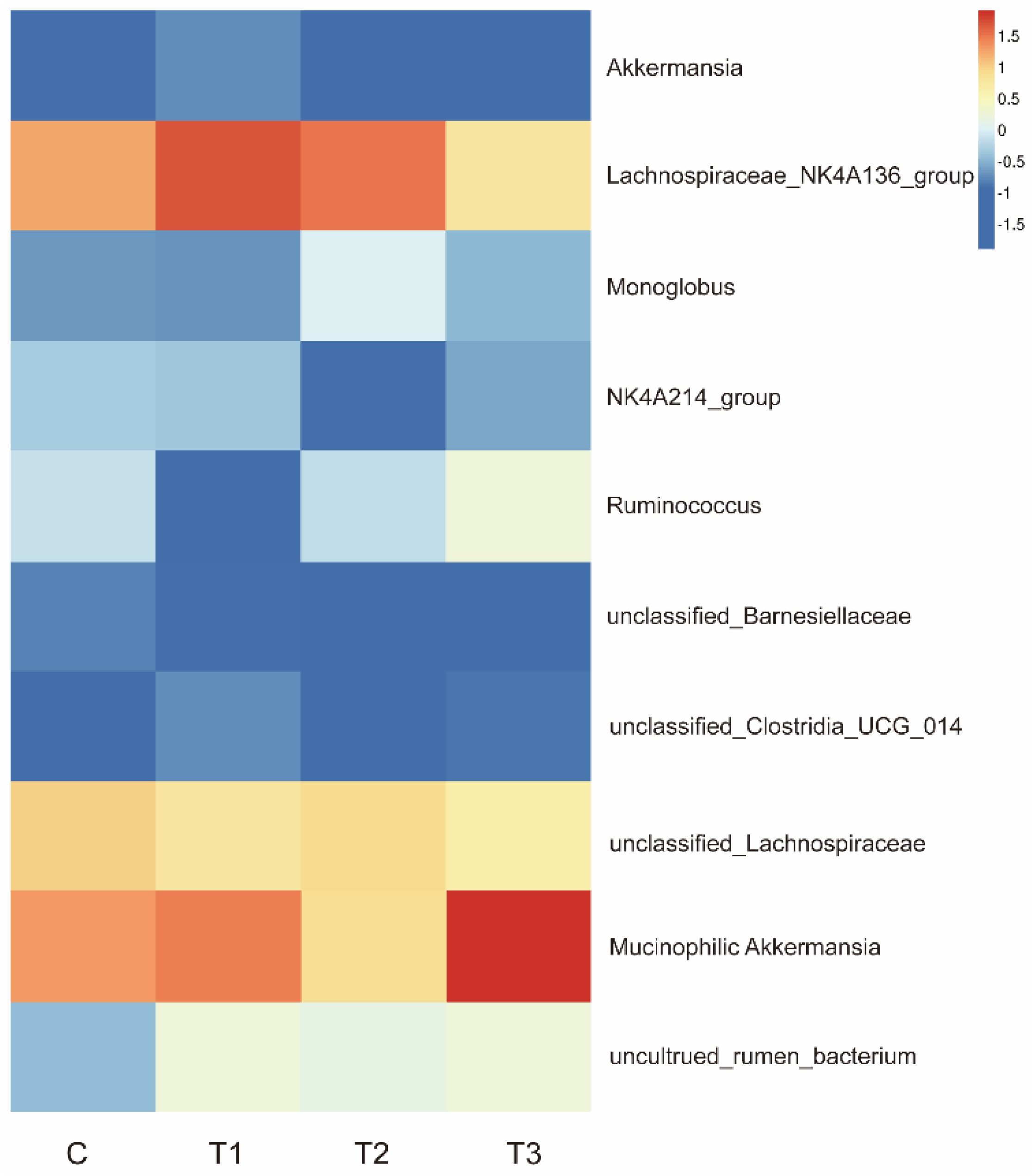 Figure 6 indicate that the supplementation of FOS does not disrupt the gut microbial flora balance in healthy rabbits. However, supplementation with FOS can alter the abundance of specific gut microbiota to maintain a healthy microbial community. Our findings revealed that FOS could enrich