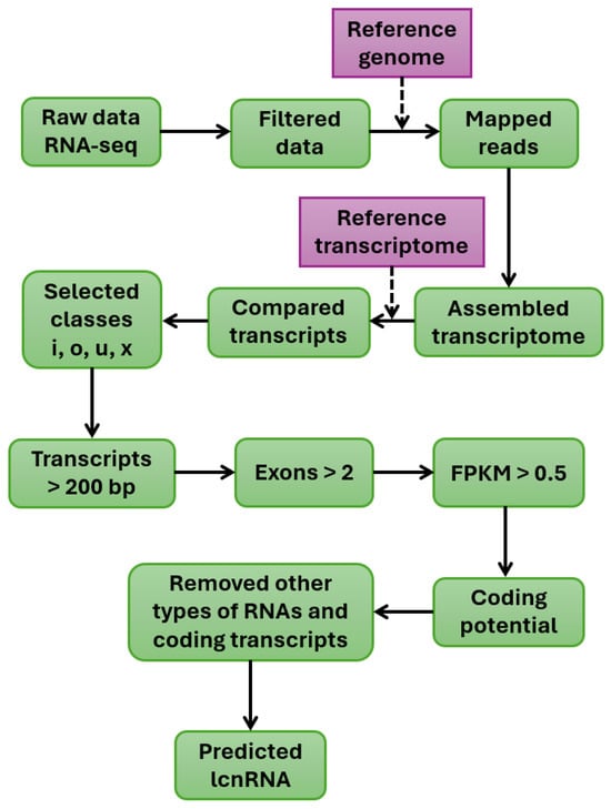 - Wang, L.; Park, H.J.; Dasari, S.; Wang, S.; Kocher, J.-P.; Li, W. CPAT: Coding-Potential Assessment Tool using an alignment-free logistic regression model. Nucleic Acids Res. 2013, 41, e74. [Google Scholar] [CrossRef]