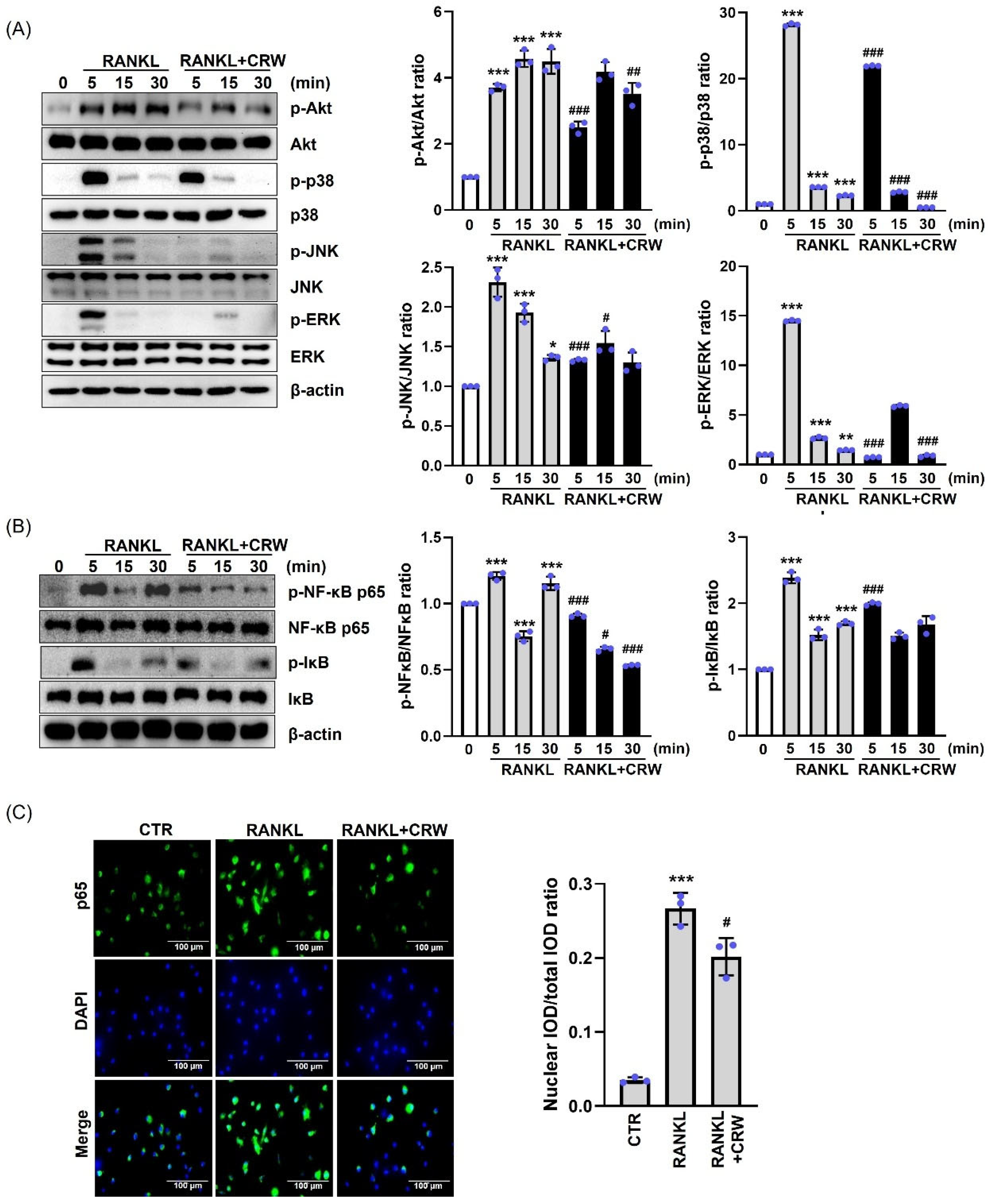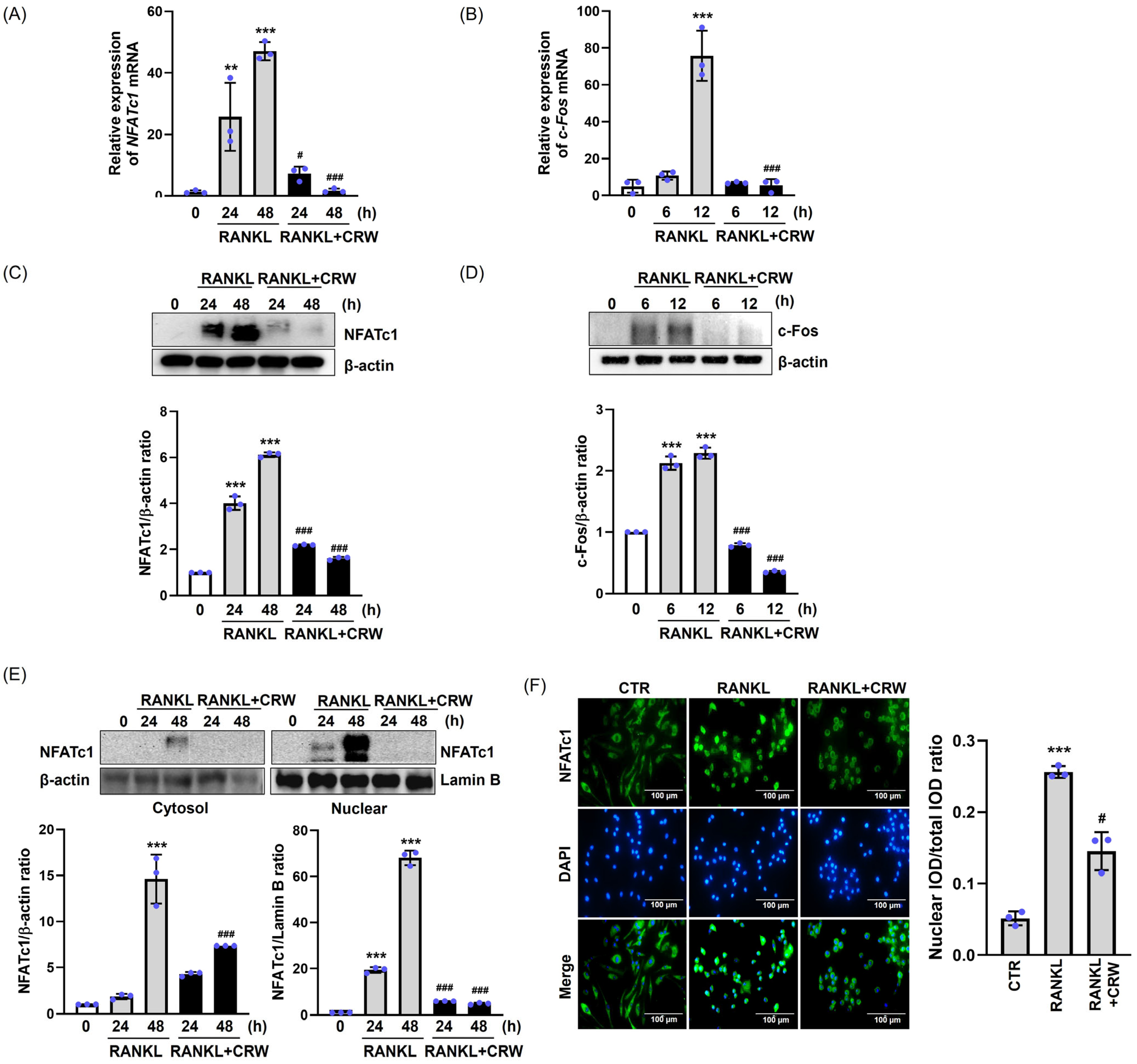 2.4. CRW Downregulates RANKL-Mediated Induction of NFATc1 and c-Fos