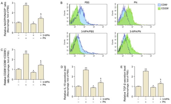 Additionally, PN increased IL-10 and TGF-β levels, but these increases were attenuated by 3-MPA in the senescent macrophages (Figure 2D,E).