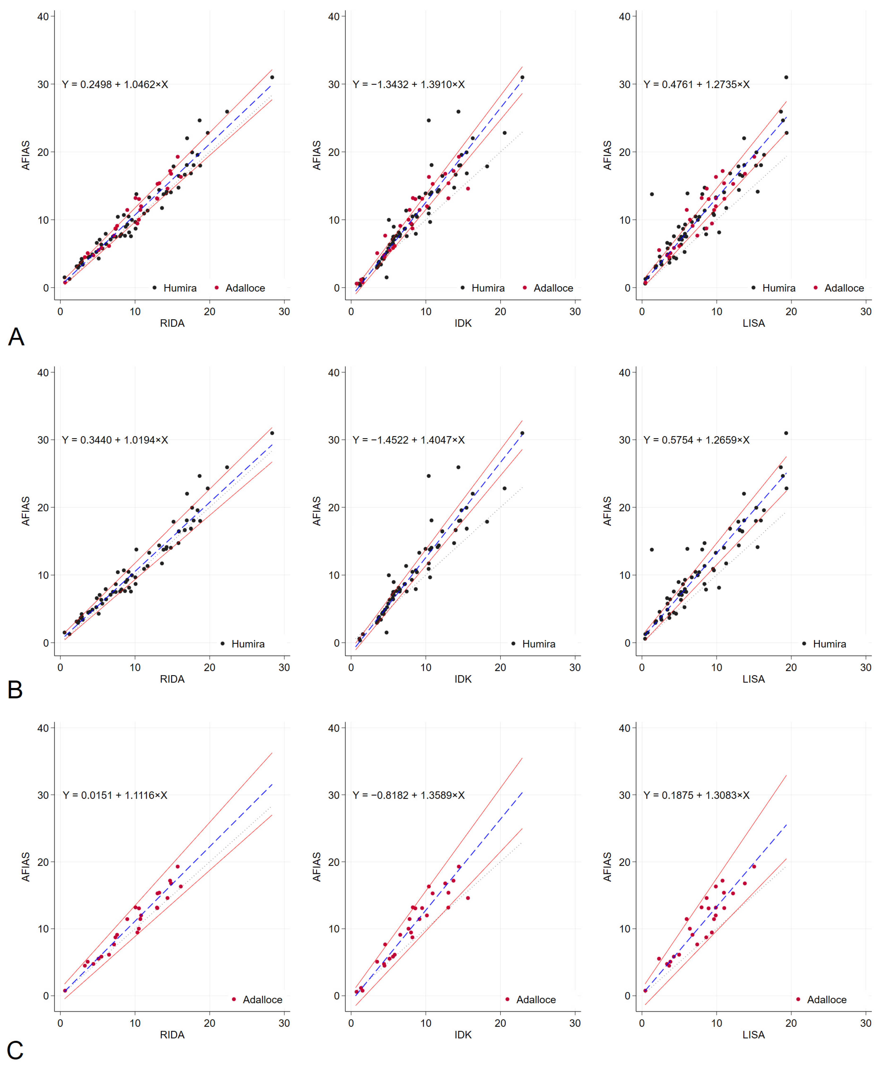 9]. This expands beyond prior work that evaluated the AFIAS platform with one infliximab and one adalimumab ELISA in patients with various rheumatic diseases [