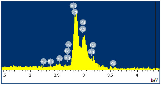 Figure 1. EDS spectrum of elemental composition of Pd-Ag-Ru foil samples.