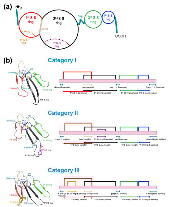 * Among the smallest number of amino acid residues in their respective disulfide loop. # Unusually long C-terminal tail. ^ Loop I is almost equal length to or longer than loop II.
