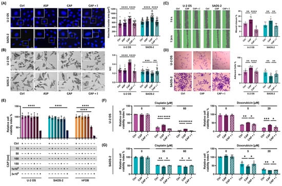 To assess the translational relevance of capsaicin as a chemotherapeutic adjuvant at a 50 nM concentration—and given its lack of cytotoxicity and observed cytoprotective effect in hFOB cells—we next investigated whether capsaicin could modulate the efficacy of two standard MAP chemotherapy agents, cisplatin and doxorubicin, when used in combination across the three cell lines (Figure 3E–G).