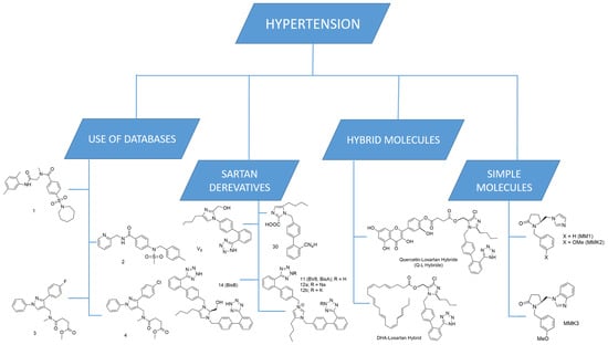 Thus, the focus of this review will be on the study of molecules acting as ARBs and their potential use in other pathological conditions as well as their ability to inhibit multiple molecular targets. Moreover, we will present our laboratory’s work on the development of novel AT1 inhibitors and dual inhibitors for the treatment of multiple diseases. The graphic representation in Figure 1 summarizes the topics covered in this review article.
