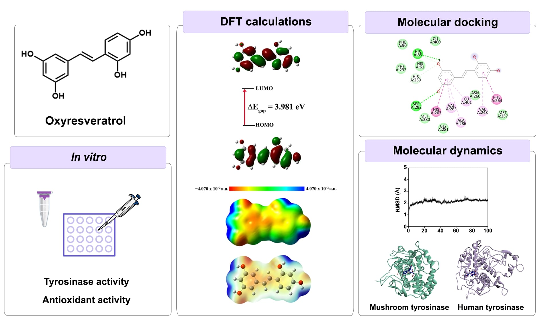 Computational and Experimental Insights into Tyrosinase and Antioxidant Activities of Resveratrol and Its Derivatives: Molecular Docking, Molecular Dynamics Simulation, DFT Calculation, and In Vitro Evaluation
