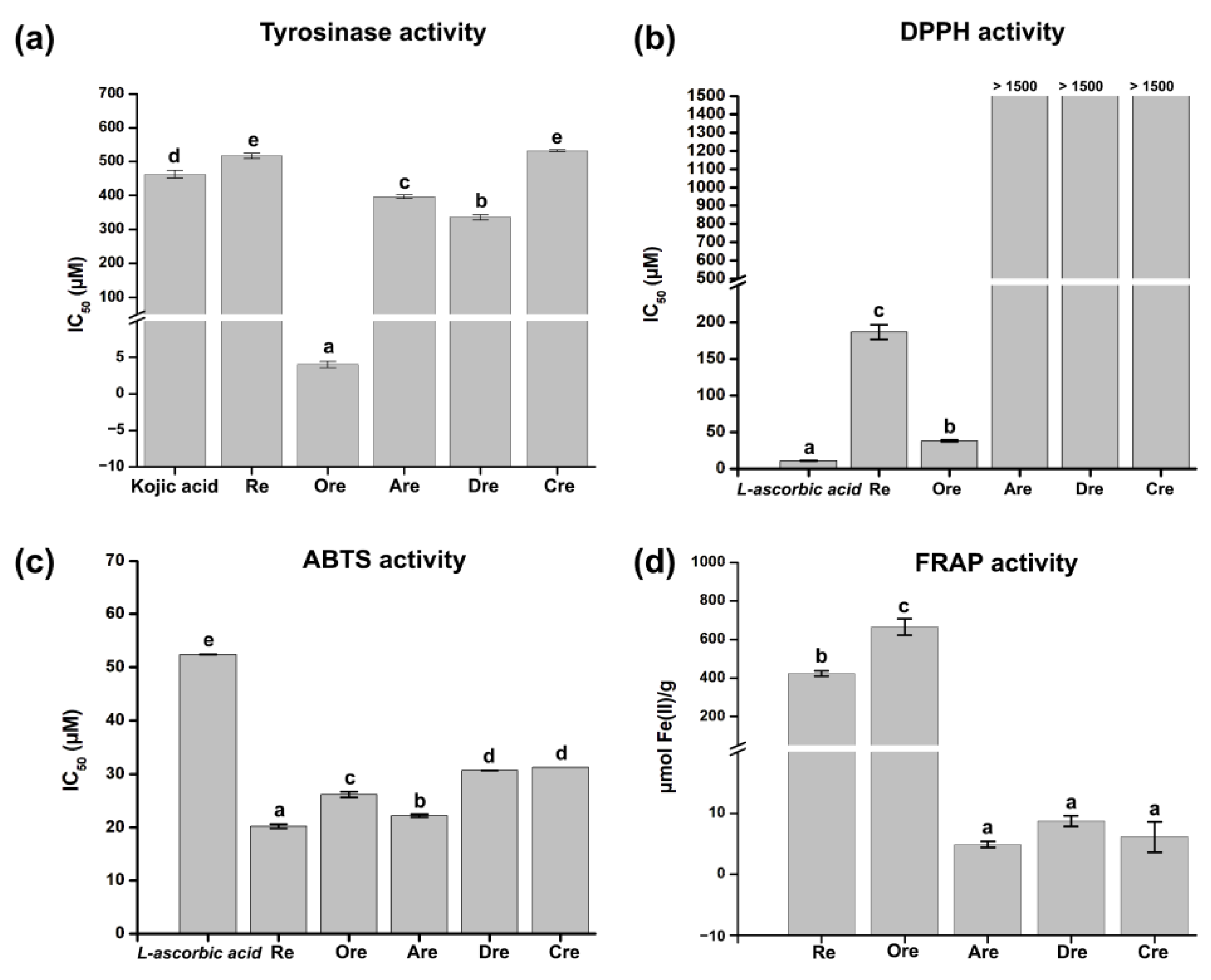 2.1. Anti-Tyrosinase and Antioxidant Activities