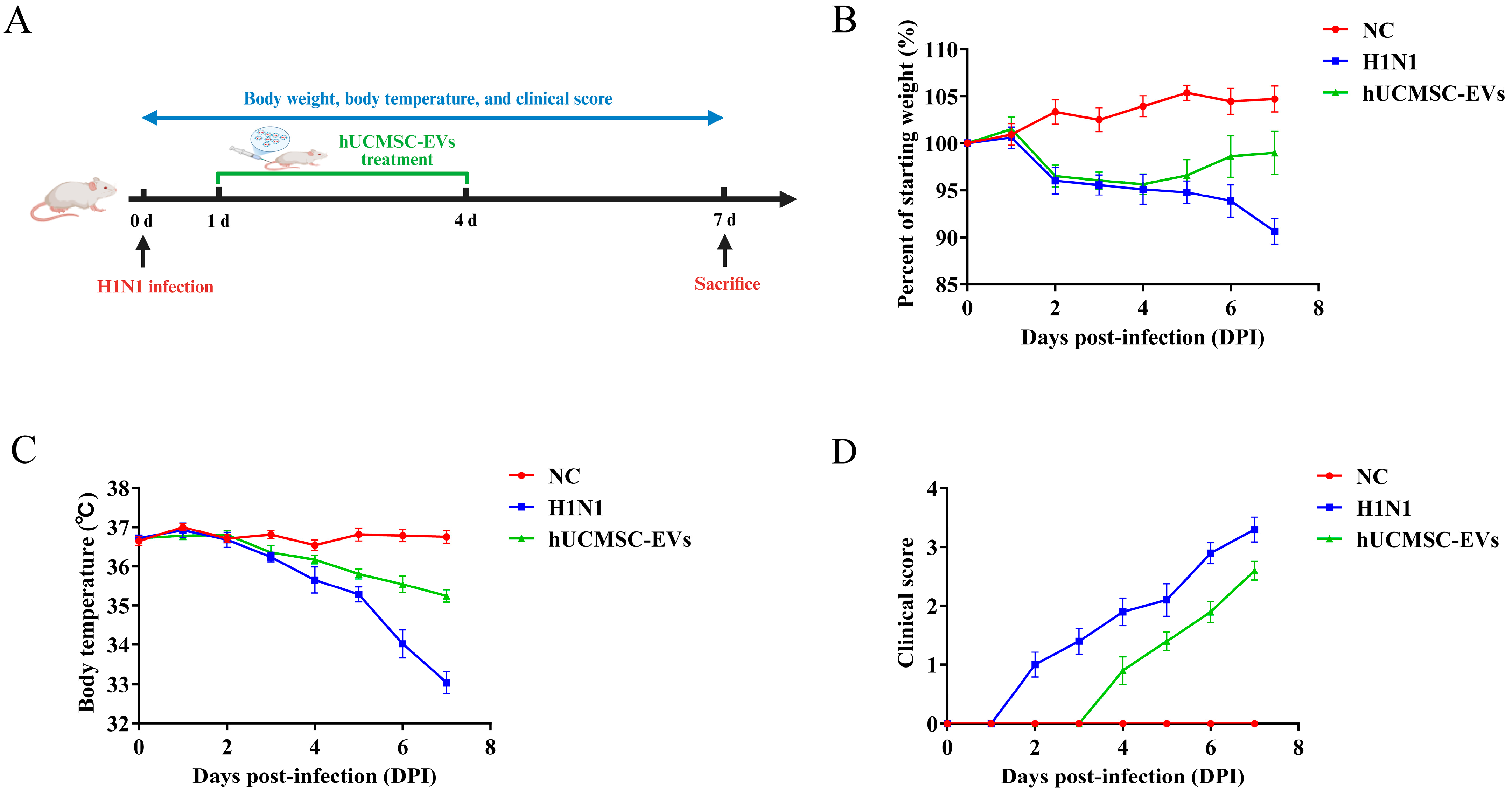 Xiao H, Yu X, Dong Y, Bao S, Meng X, Zhao J, Dong Z. Extracellular Vesicles Derived from Human Umbilical Cord Mesenchymal Stem Cells Alleviated the Inflammatory Response in Mice Infected with the Influenza Virus A (H1N1). International Journal of Molecular Sciences. 2025; 26(18):8839. https://doi.org/10.3390/ijms26188839