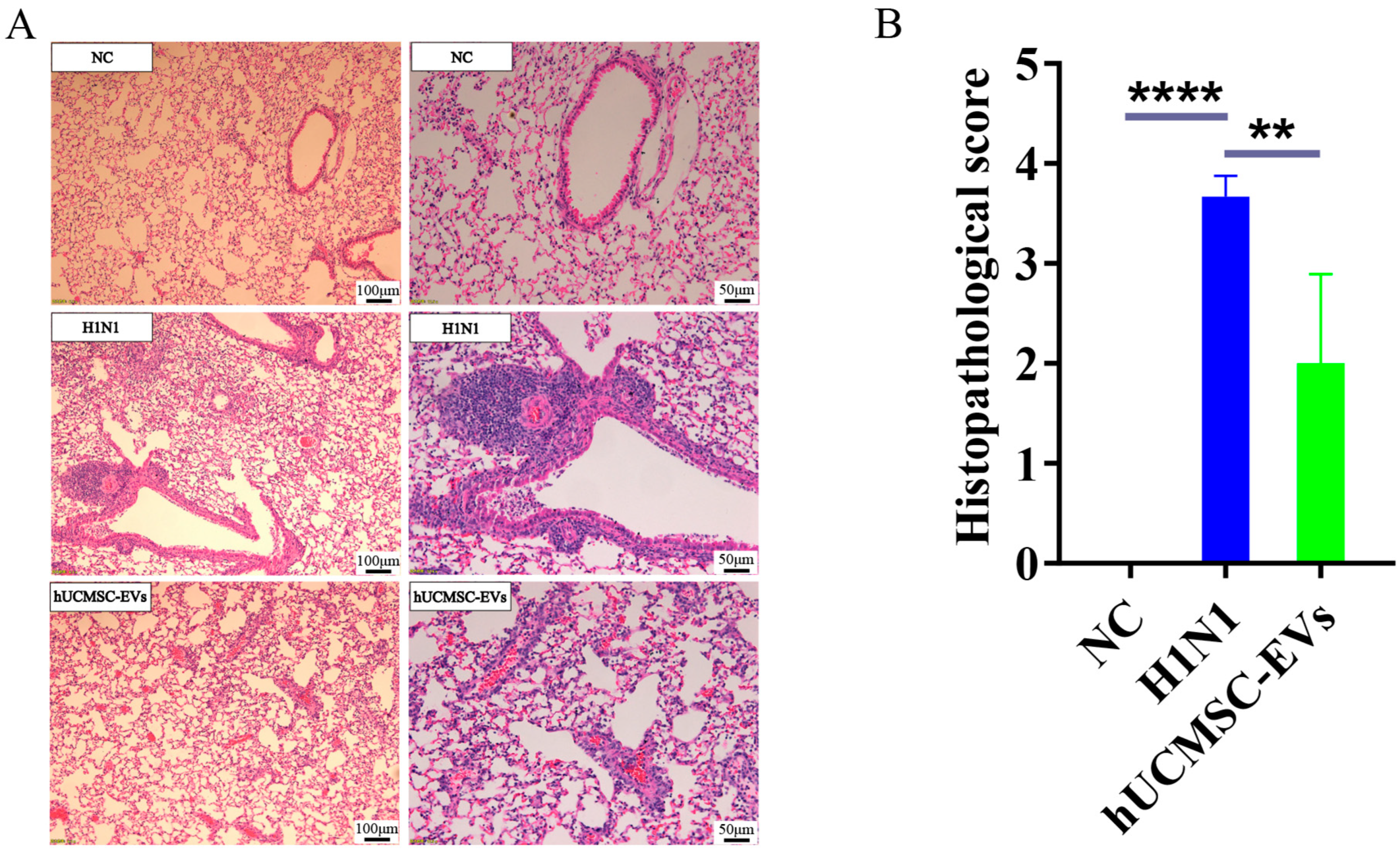 Chicago/Turabian StyleXiao, Hui, Xiao Yu, Yiding Dong, Shilong Bao, Xiaoting Meng, Jia Zhao, and Zhiyong Dong. 2025. "Extracellular Vesicles Derived from Human Umbilical Cord Mesenchymal Stem Cells Alleviated the Inflammatory Response in Mice Infected with the Influenza Virus A (H1N1)" International Journal of Molecular Sciences 26, no. 18: 8839. https://doi.org/10.3390/ijms26188839