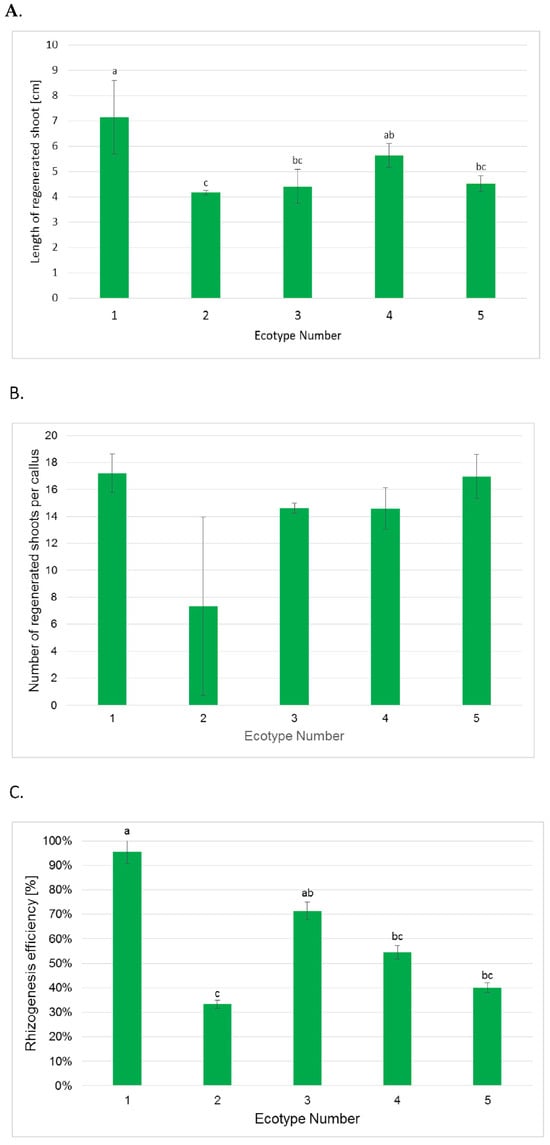 2.3. Efficiency of Shoot Regeneration and Rooting