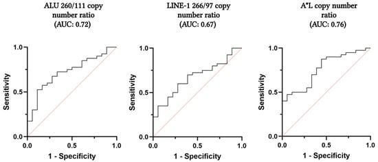 | Variable | ALU 260/111 Copy Number Ratio | p-Value | LINE-1 266/97 Copy Number Ratio | p-Value |