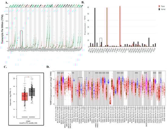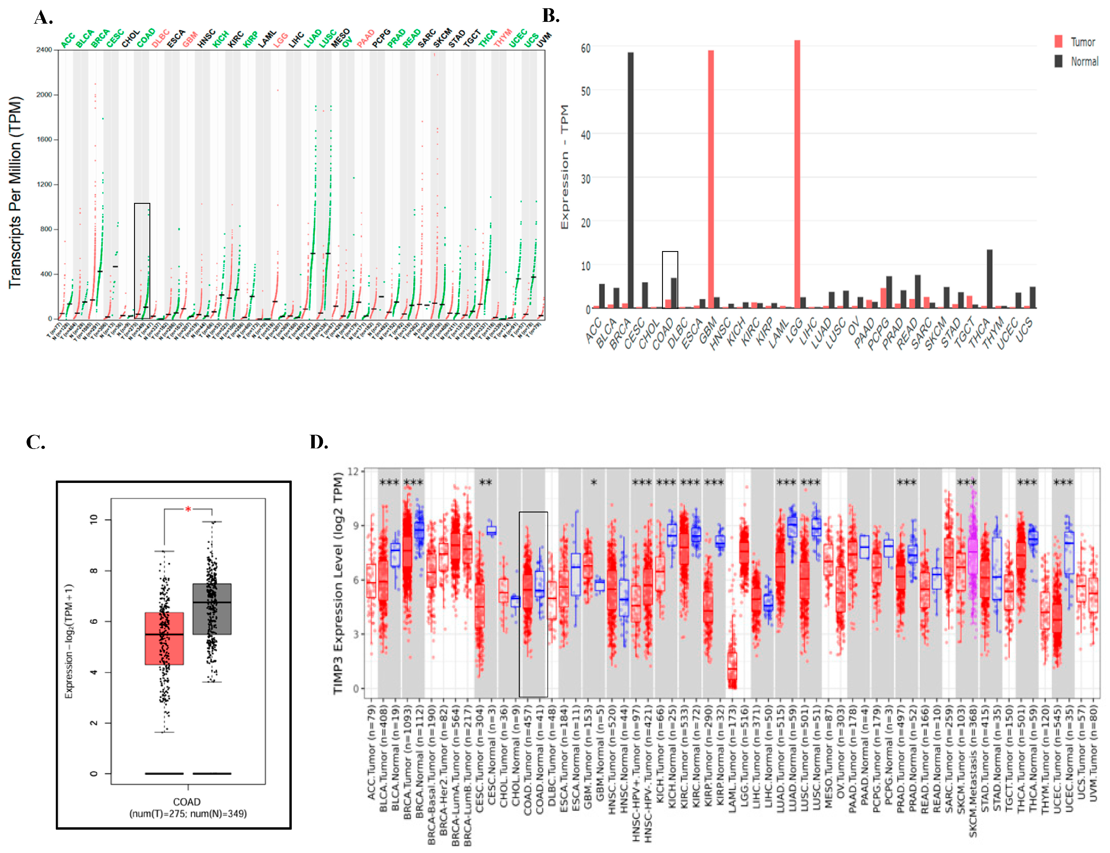 2.1. TIMP3 is Highly Expressed in Normal Cells Compared to CRC