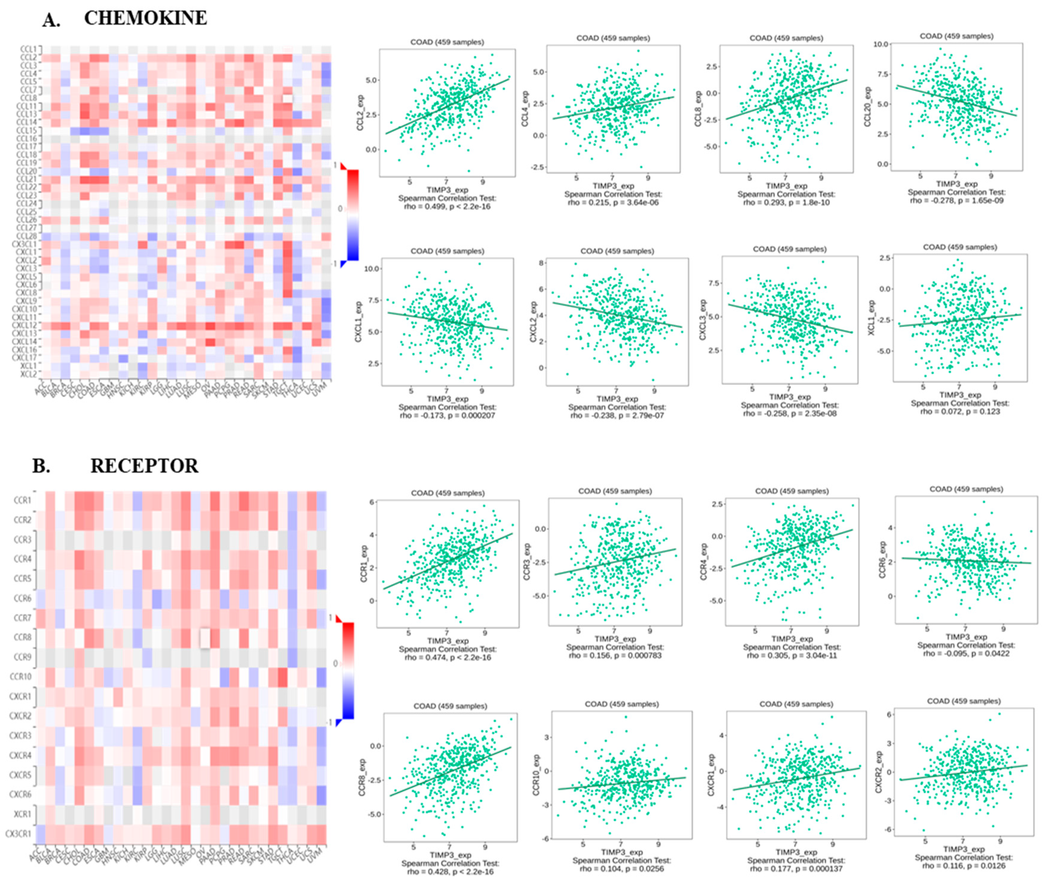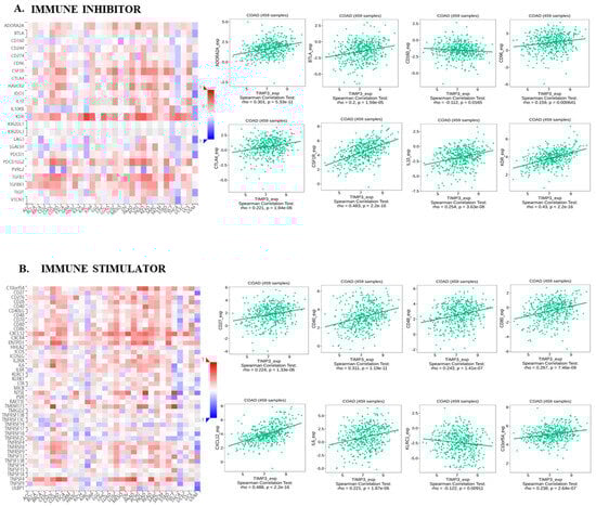 2.3. TIMP3 Displays an Intricate Association with Immune-Related Regulatory Molecules