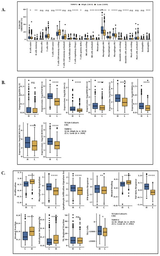 2.2. The Immune Response in CRC Tissues Is Enhanced by TIMP3 and Its Co-Expressed Genes
