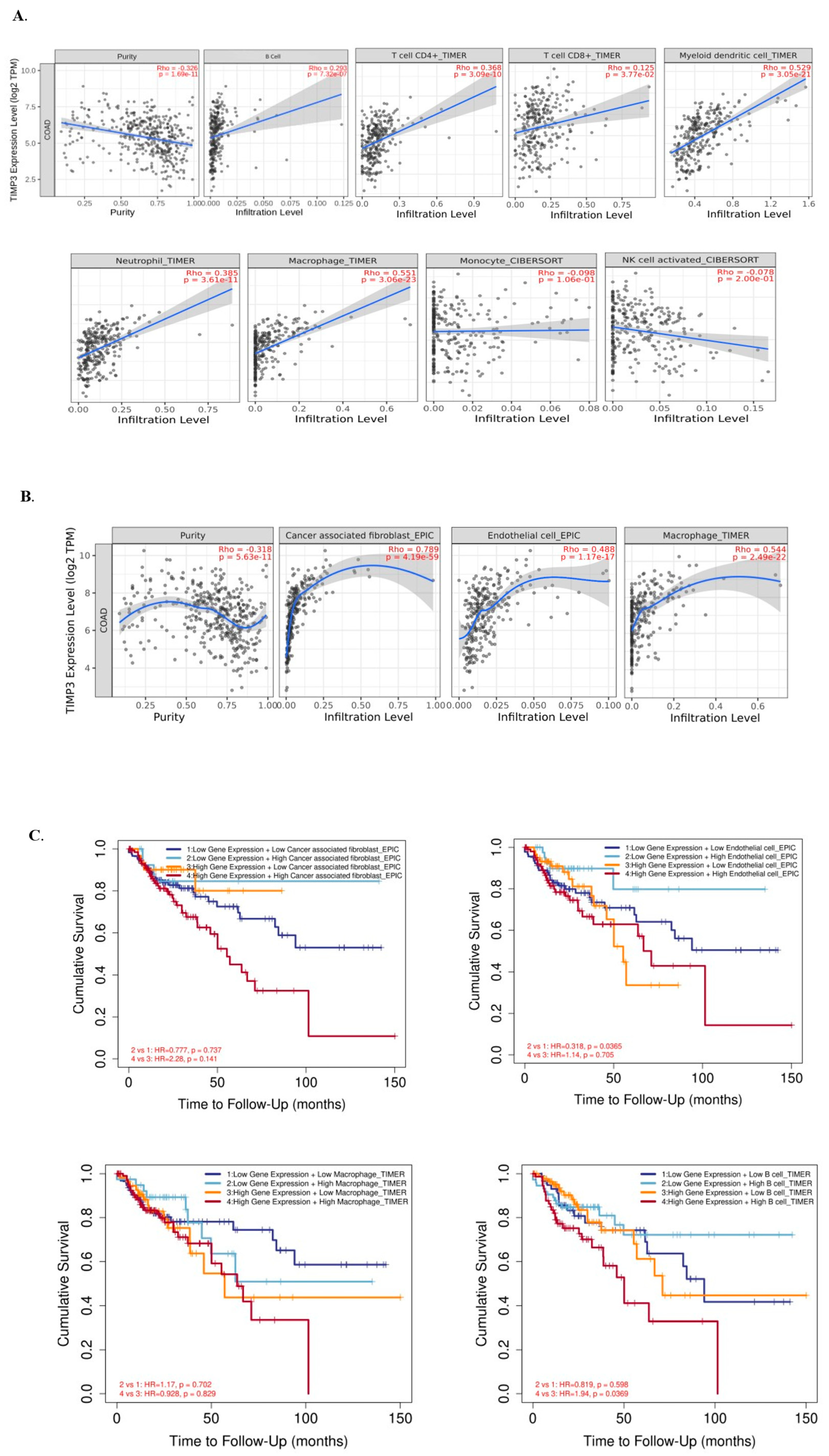 2.7. Immune Cell Infiltration and TIMP3 in Patients with CRC
