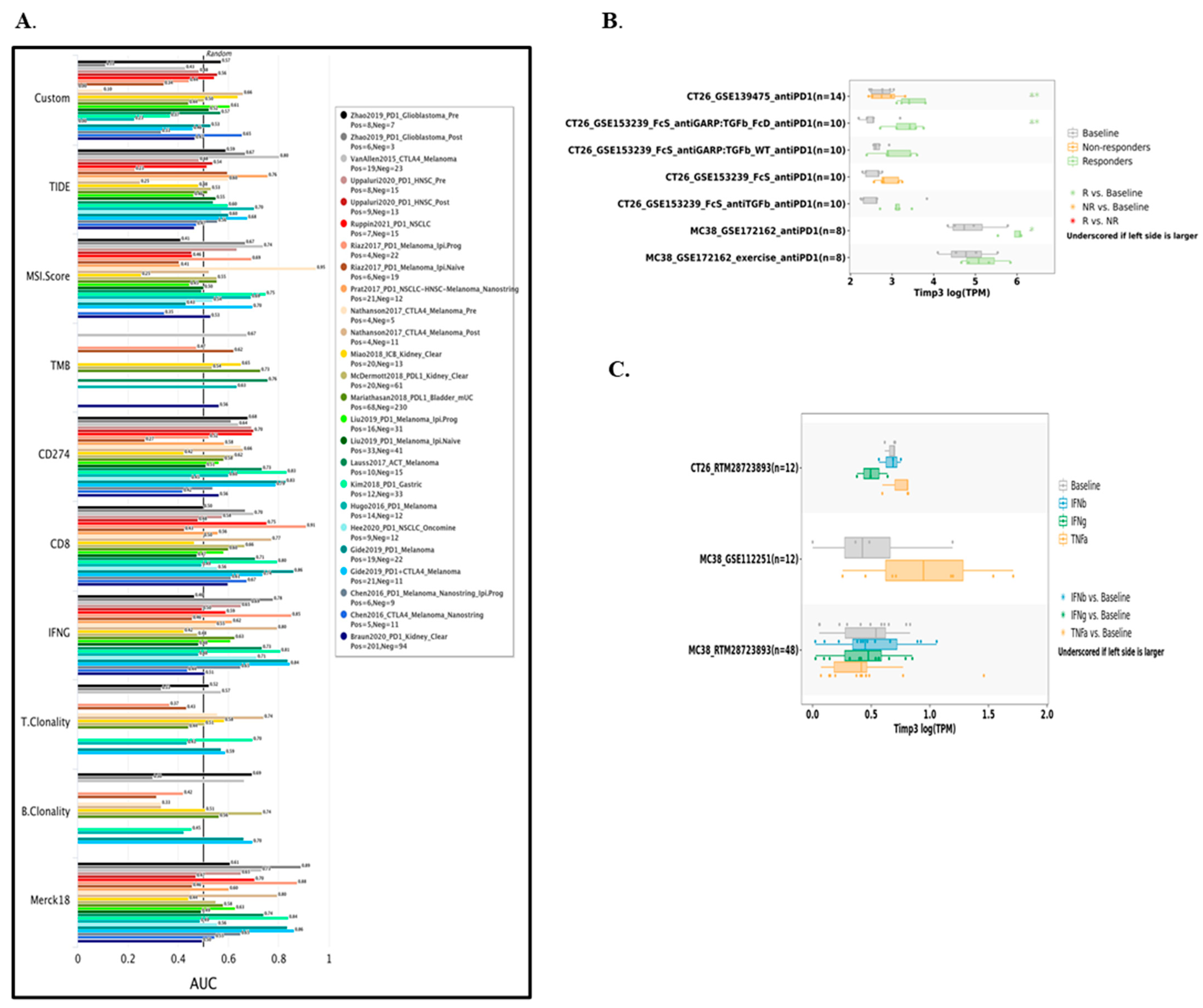 - Zeng, Z.; Wong, C.J.; Yang, L.; Ouardaoui, N.; Li, D.; Zhang, W.; Gu, S.; Zhang, Y.; Liu, Y.; Wang, X.; et al. TISMO: Syngeneic mouse tumor database to model tumor immunity and immunotherapy response. Nucleic Acids Res. 2022, 50, D1391–D1397. [Google Scholar] [CrossRef]