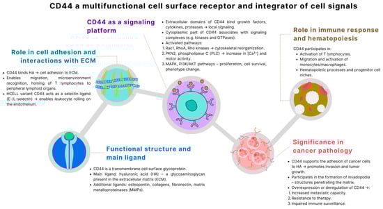 | Receptors and co-receptors (e.g., EGFR, TGF-βR)—signaling complexes | They cooperate with CD44 in the activation of PI3K, MAPK, and Rho-GTPase pathways |