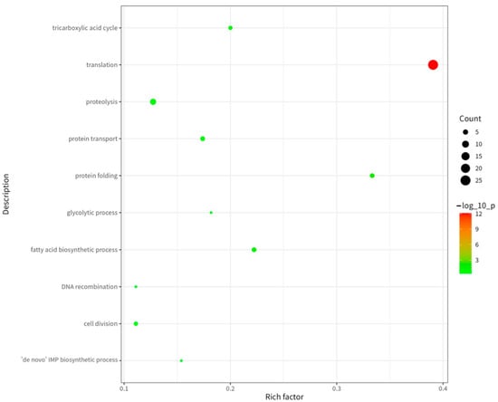 As shown in Figure 5, among the biological processes (BPs), “translation,” “proteolysis,” and “protein folding” were the most significantly enriched processes. Translation represents the core mechanism of protein synthesis, while proteolysis facilitates protein degradation and turnover, and protein folding ensures correct conformational maturation and functionality of proteins []. This enrichment profile indicates that proteins comprising this immunopeptidome extensively participate in protein synthesis, degradation, and quality control pathways. These pathways are essential for maintaining intracellular protein homeostasis.