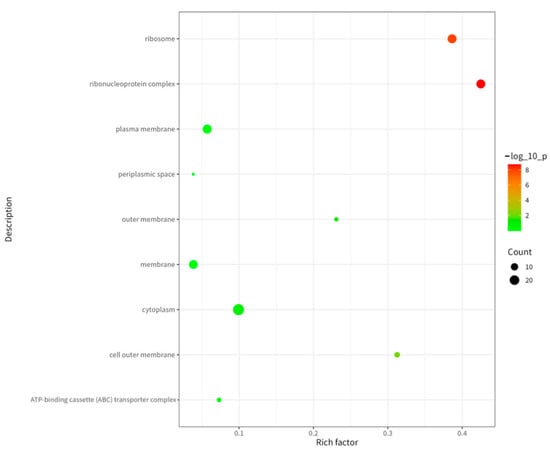 As shown in Figure 6, cellular component (CC) analysis revealed predominant localization of immunopeptidome source proteins in the cytoplasm, ribosomes, and plasma membrane. The cytoplasm serves as the primary site for intracellular biochemical reactions, ribosomes function as the essential machinery for protein synthesis, and the plasma membrane acts as the critical interface for substance exchange and signal transduction between the cell and its environment []. This compartmental enrichment demonstrates broad subcellular distribution of these antigens across key functional domains.