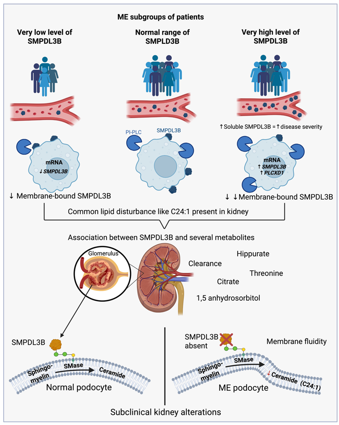 APA StyleRostami-Afshari, B., Elremaly, W., McGregor, N. R., Huang, K. J. K., Armstrong, C. W., Franco, A., Godbout, C., Elbakry, M., Abdelli, R., & Moreau, A. (2025). Circulating Levels of SMPDL3B Define Metabolic Endophenotypes and Subclinical Kidney Alterations in Myalgic Encephalomyelitis. International Journal of Molecular Sciences, 26(18), 8882. https://doi.org/10.3390/ijms26188882