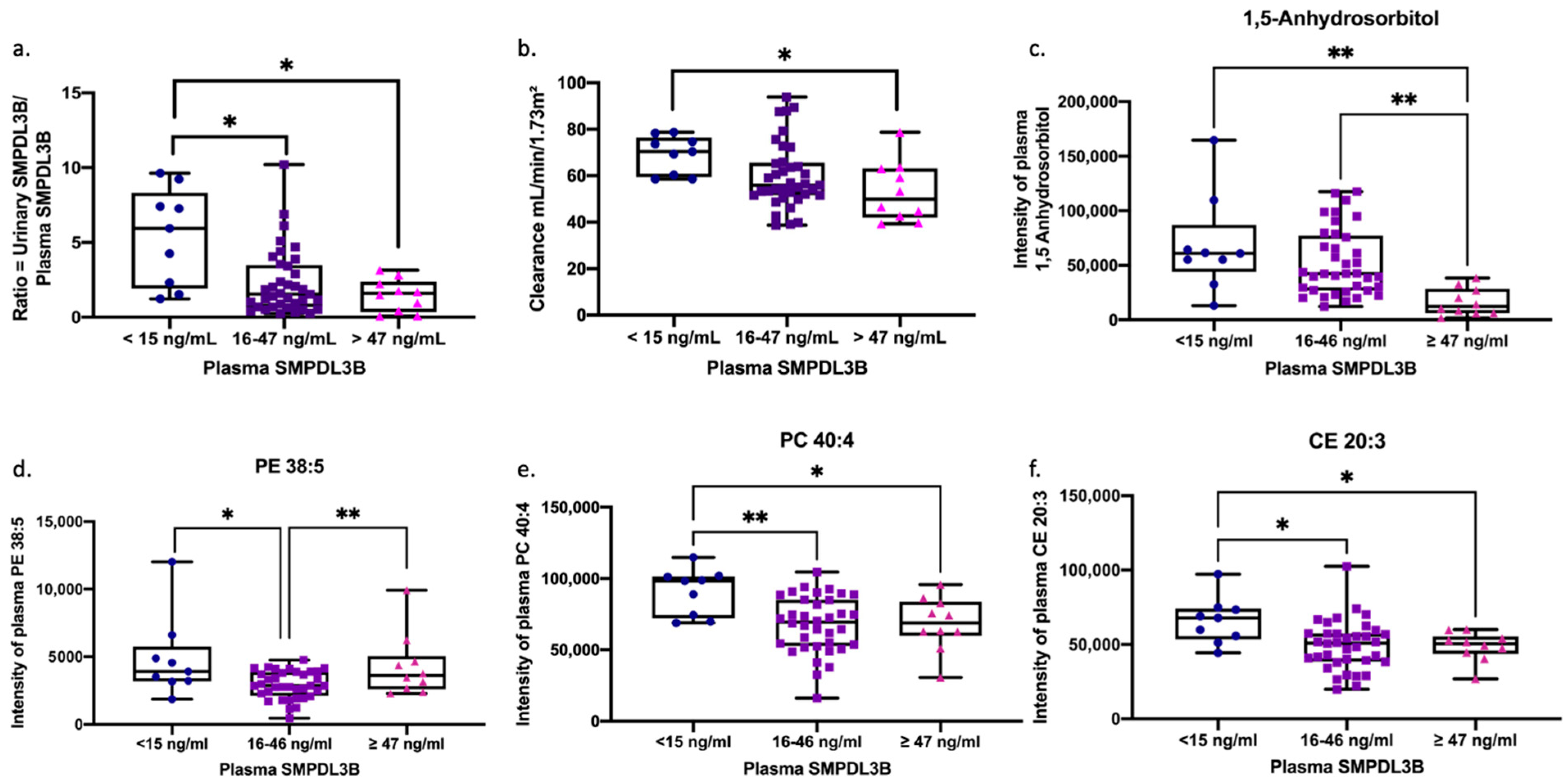 4.6. Measurement of Plasma and Urinary SMPDL3B Levels