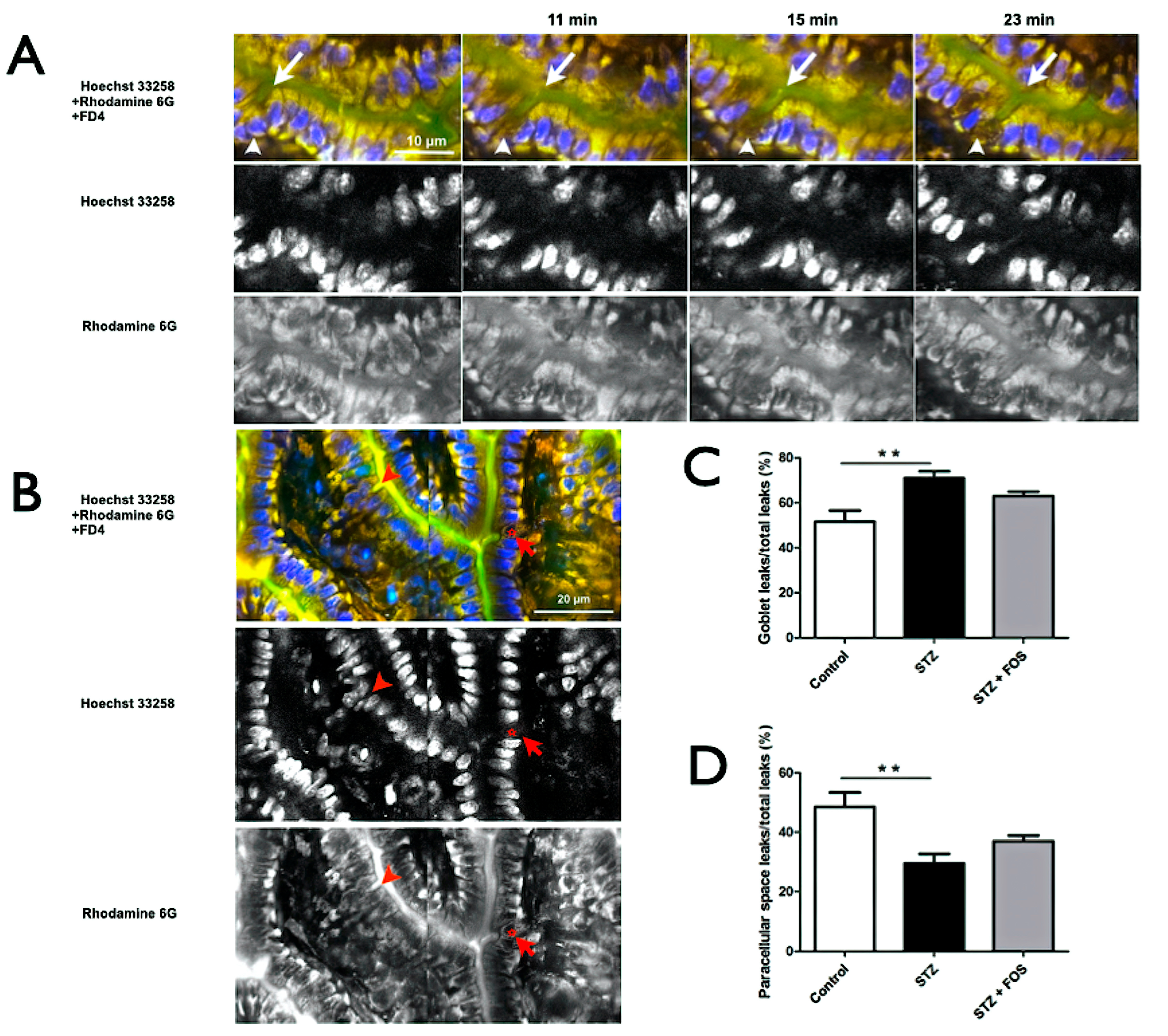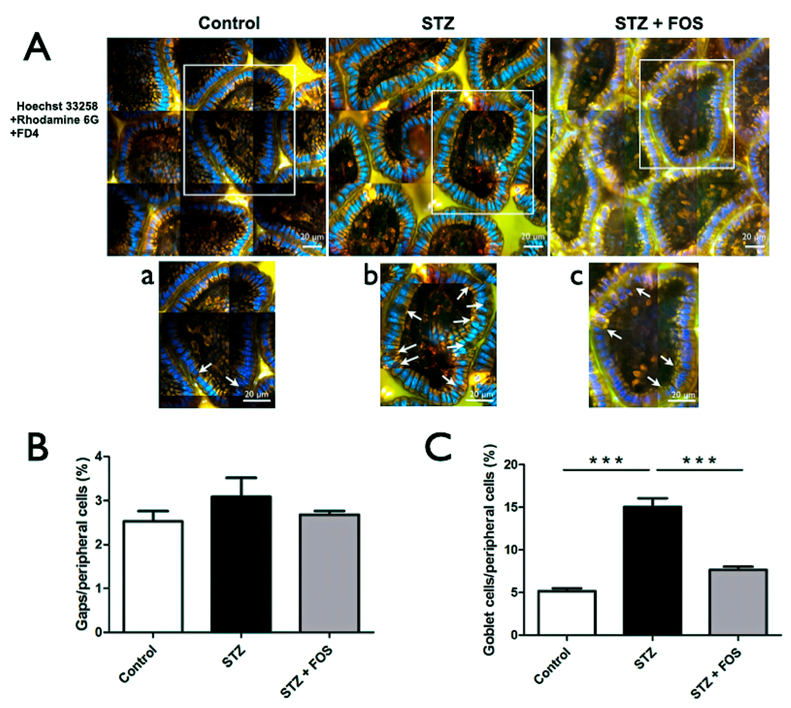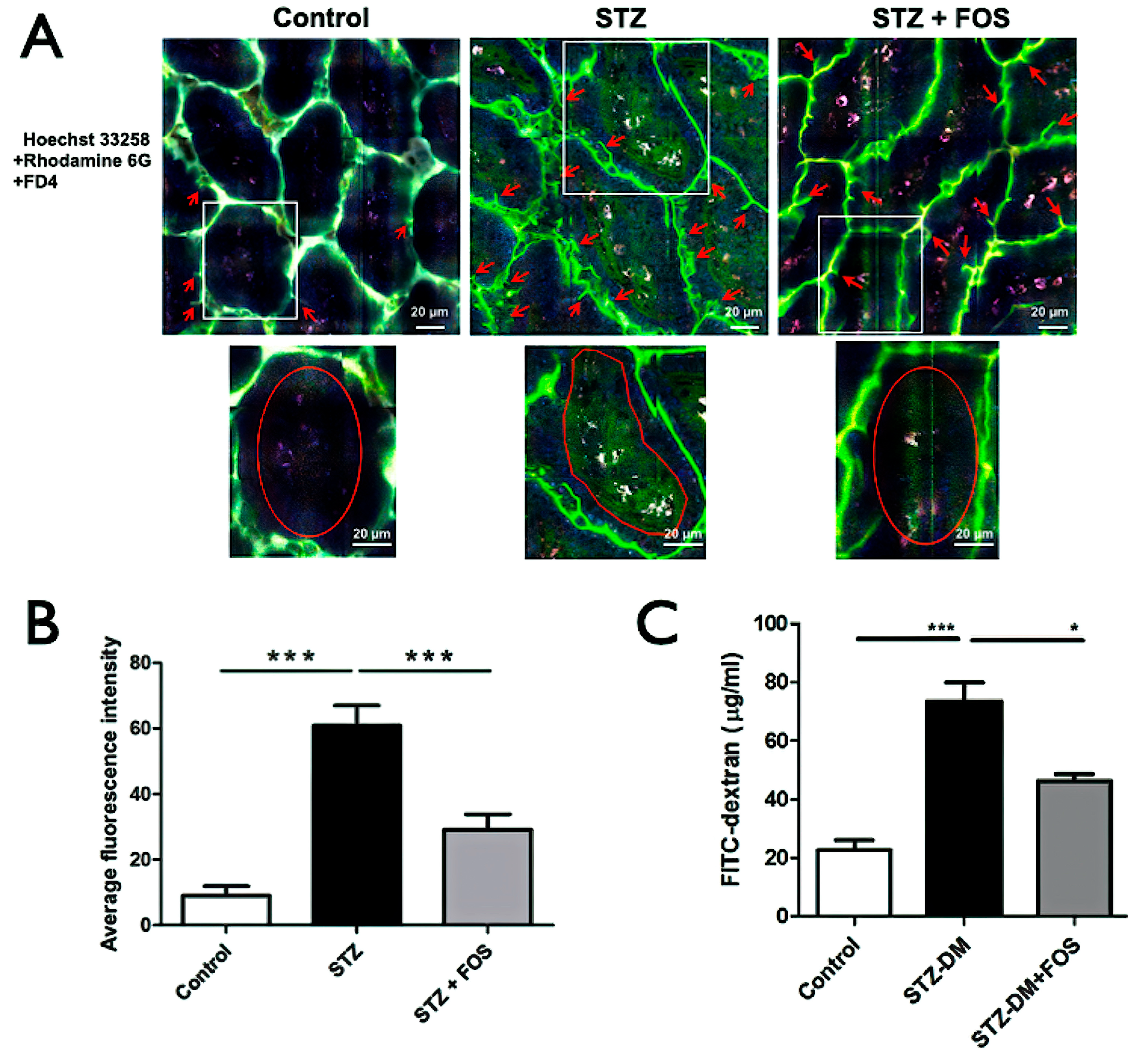 2.3. Effects of STZ and FOS on Intestinal Permeability