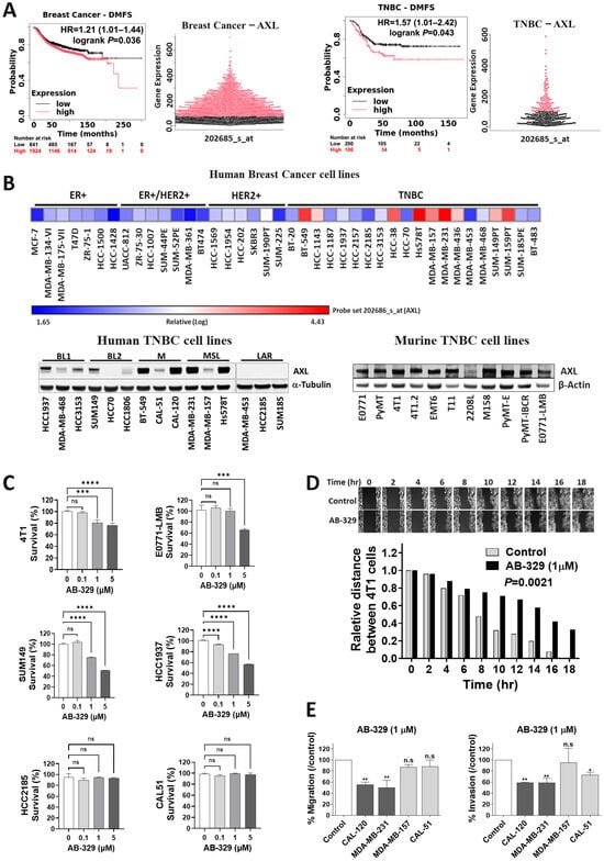 2.1. AXL Expression Is Elevated in TNBC and Targetable by an AXL-Specific Inhibitor, AB-329