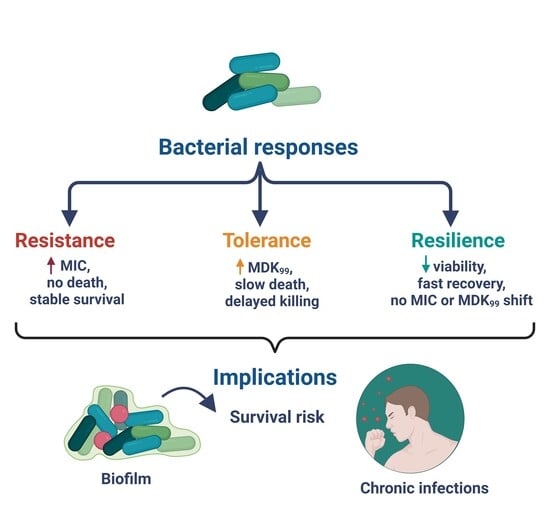 - Carvalho, G.; Forestier, C.; Mathias, J.D. Antibiotic resilience: A necessary concept to complement antibiotic resistance? Proc. R. Soc. B 2019, 286, 20192408. [Google Scholar] [CrossRef] [PubMed]