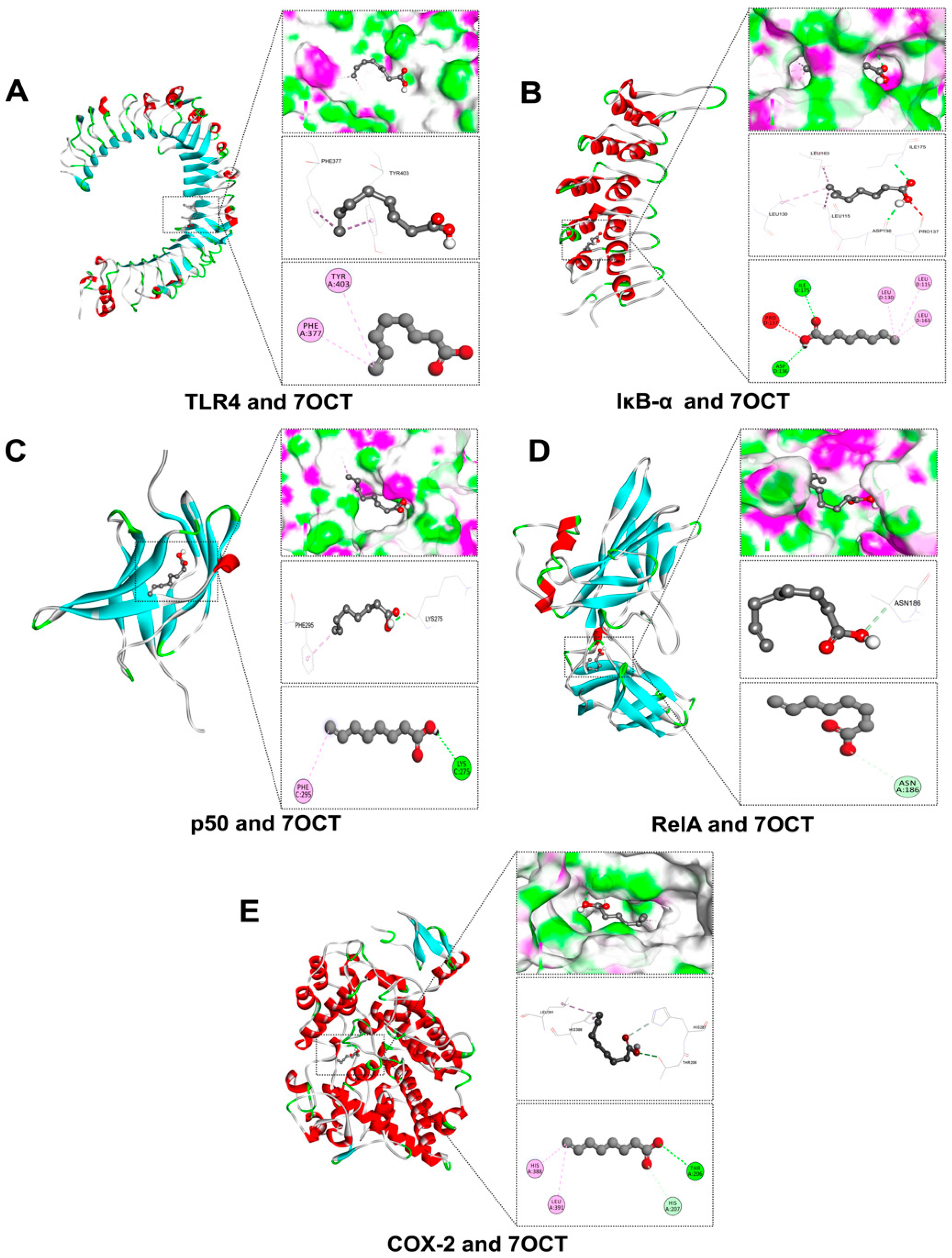 HIS207, HIS388, LEU391, THR206 | −5.5 | Cyclooxygenase-2 (COX-2) | 7-Octenoic acid |