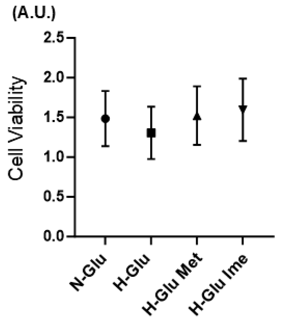 - Davargaon, R.S.; Sambe, A.D.; Muthangi, V.V.S. Toxic effect of high glucose on cardiomyocytes, H9c2 cells: Induction of oxidative stress and ameliorative effect of trolox. J. Biochem. Mol. Toxicol. 2019, 33, e22272. [Google Scholar] [CrossRef] [PubMed]