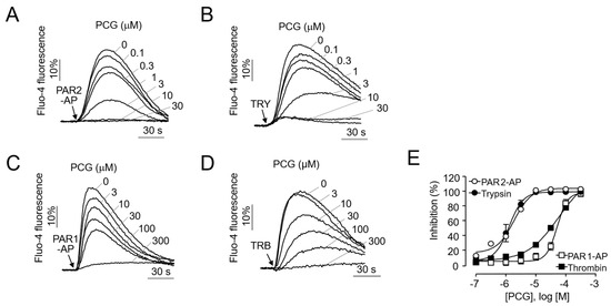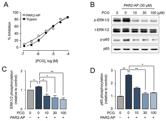 2.1. Selective and Potent Inhibition of PAR2 by PCG in HaCaT Cells