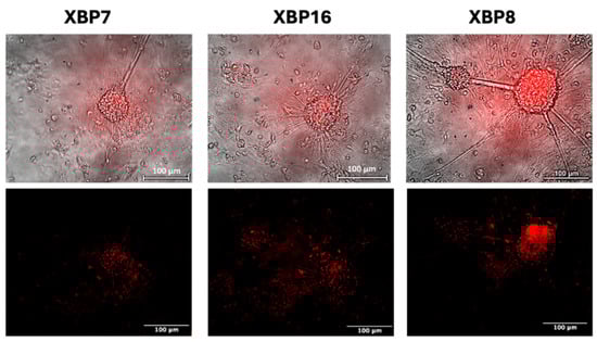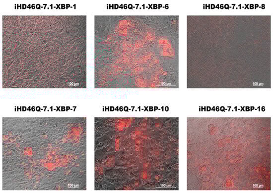 XBP1-TagRFP sensors produce red signals in response to the ER stress inducer tunicamycin, in transgenic iPSC clones XBP-1, XBP-6, XBP-8, XBP-7, XBP-10 and XBP-16 of iHD46Q-7.1 cell line.
