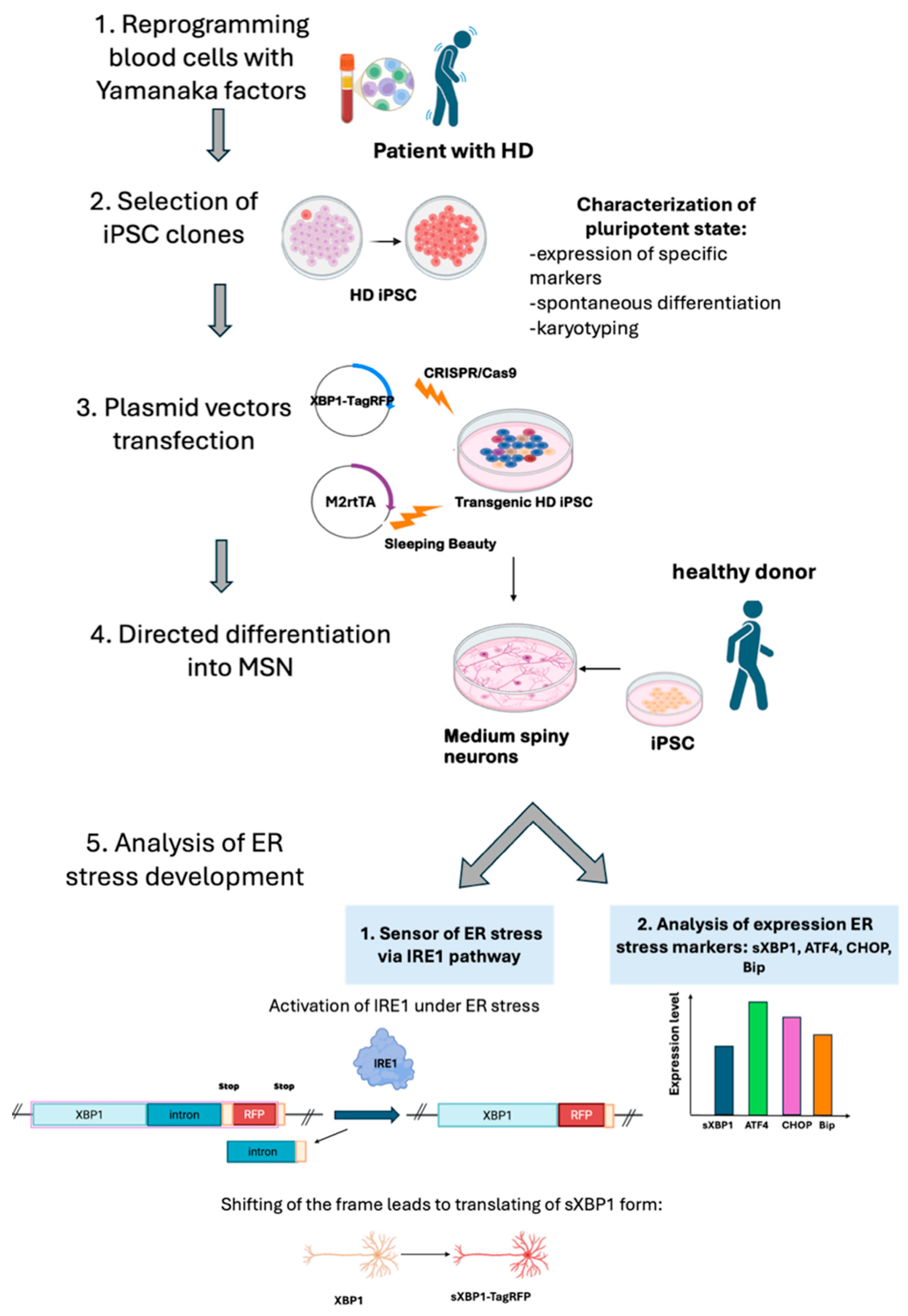 Makeeva, V.S.; Sivkov, A.Y.; Zakian, S.M.; Malakhova, A.A. Generating a Cell Model to Study ER Stress in iPSC-Derived Medium Spiny Neurons from a Patient with Huntington’s Disease. Int. J. Mol. Sci. 2025, 26, 8930. https://doi.org/10.3390/ijms26188930