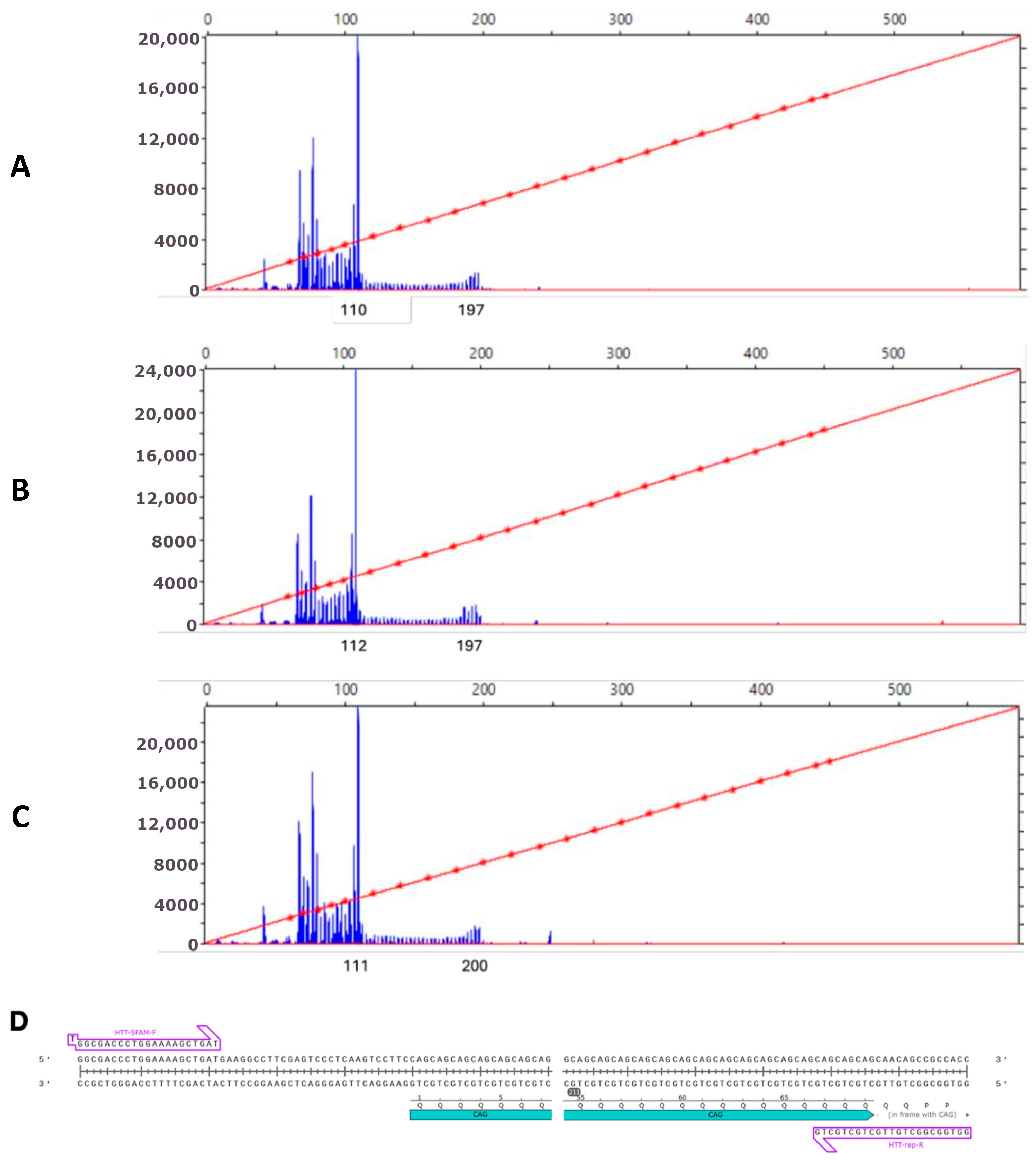 4.3. Assessment of CAG Repeat Tract Length in HTT Gene