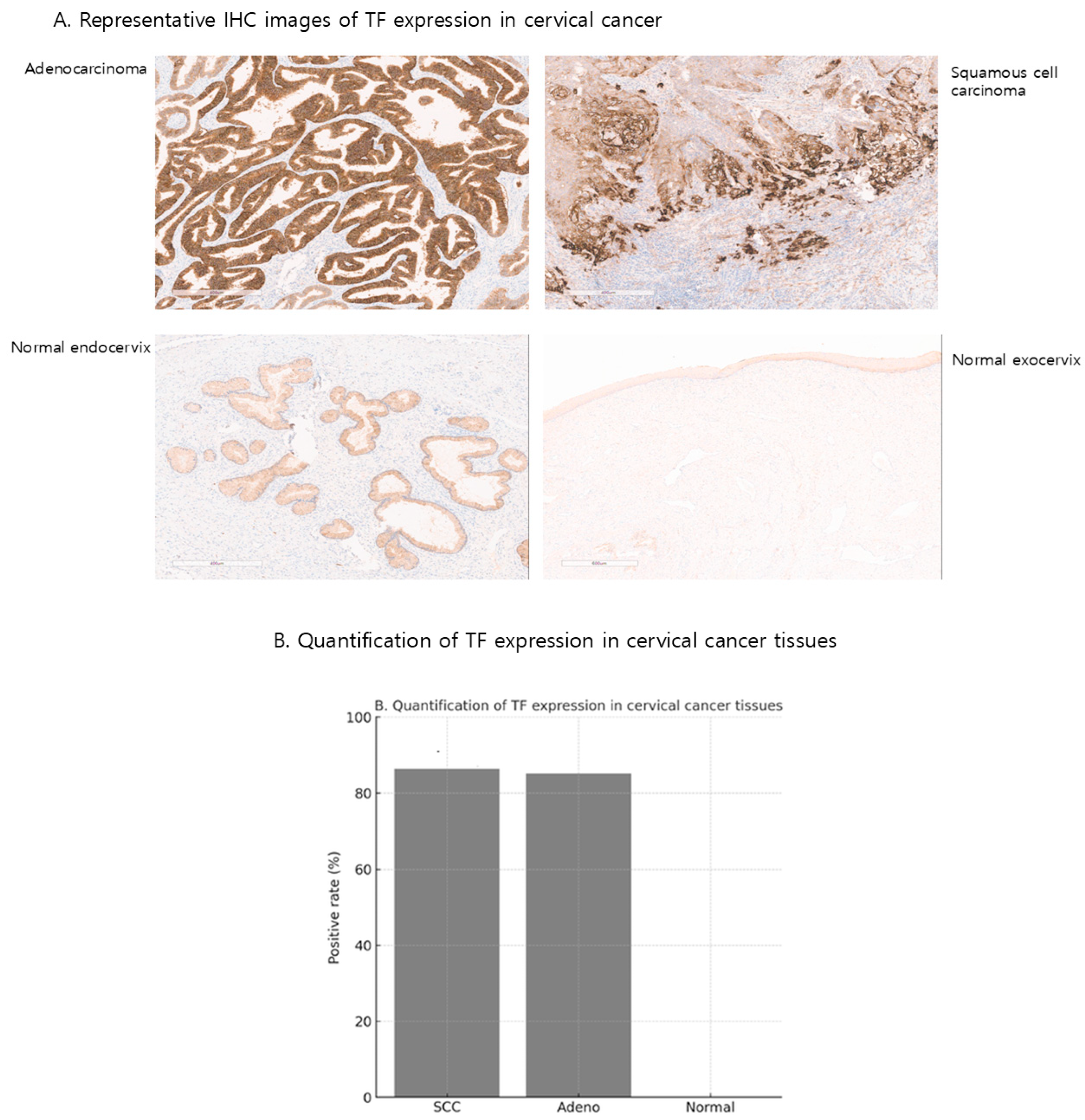 2.1. TF Expression in Cervical Cancer and Normal Human Tissues from Cervix