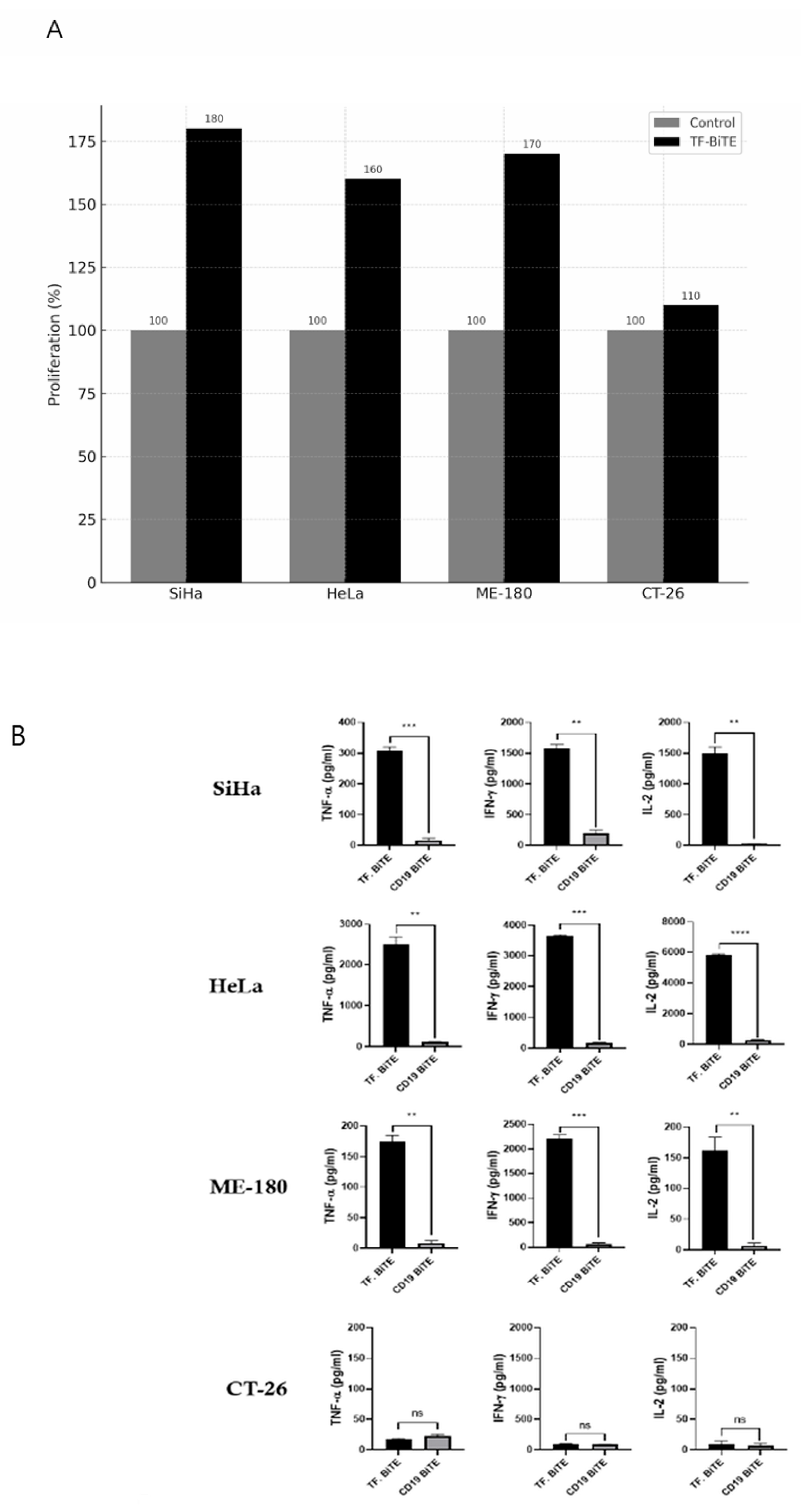 2.2.2. TF-BiTE Directs T Cells to Kill TF-Expressing Cervical Cancer Cells In Vitro