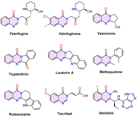 Figure 5. 4-Quinazolinone-based natural products and drug molecules.