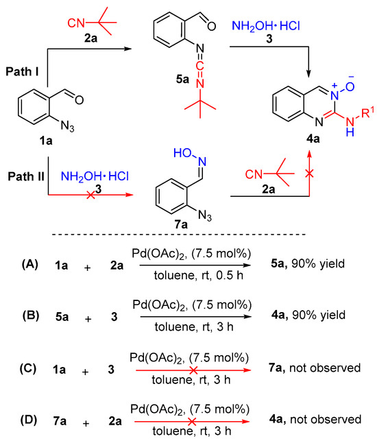 Scheme 2. Control experiments for mechanistic pathways. (A) 5a, 90%; (B) 4a, 90%; (C) 7a, not observed; (D) 4a, not observed.