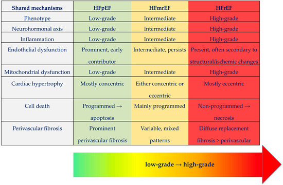 | C-reactive protein (CRP) | Marker of systemic inflammation | Elevated in HFpEF, HFmrEF, HFrEF | Prognostic of adverse outcomes, reflects low-grade systemic inflammation |