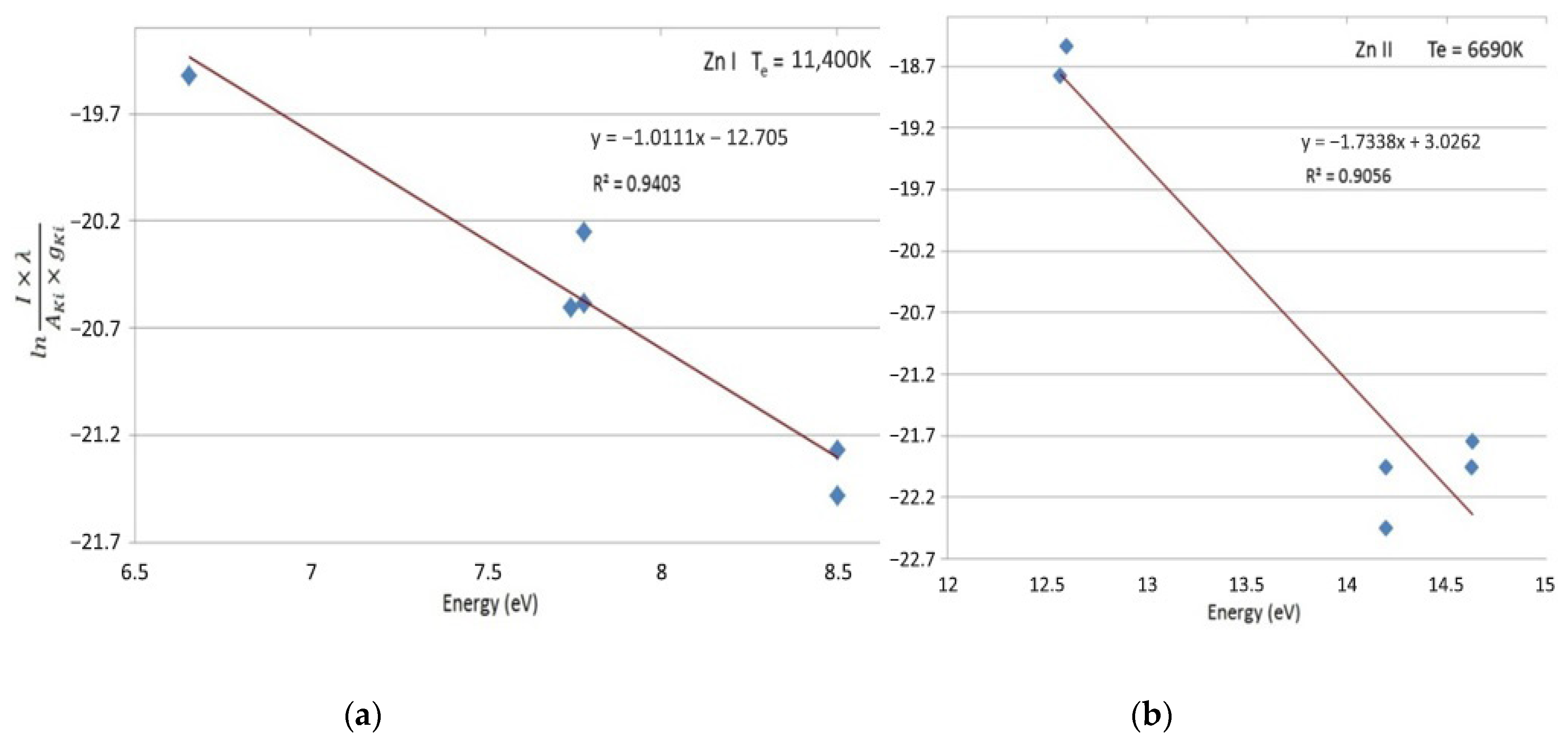 - T—plasma temperature, Imn—intensity of the line transition from m-level to n-level,