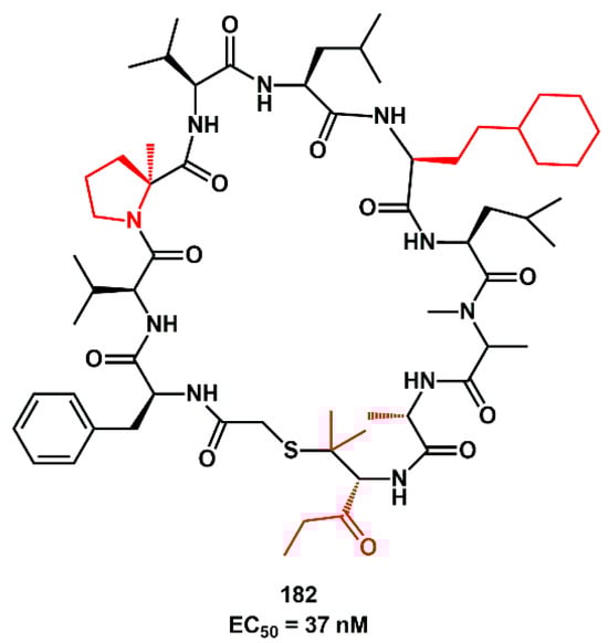 - Kusumoto, Y.; Hayashi, K.; Sato, S.; Yamada, T.; Kozono, I.; Nakata, Z.; Asada, N.; Mitsuki, S.; Watanabe, A.; Wakasa-Morimoto, C.; et al. Highly Potent and Oral Macrocyclic Peptides as a HIV-1 Protease Inhibitor: mRNA Display-Derived Hit-to-Lead Optimization. ACS Med. Chem. Lett. 2022, 13, 1634–1641. [Google Scholar] [CrossRef] [PubMed]